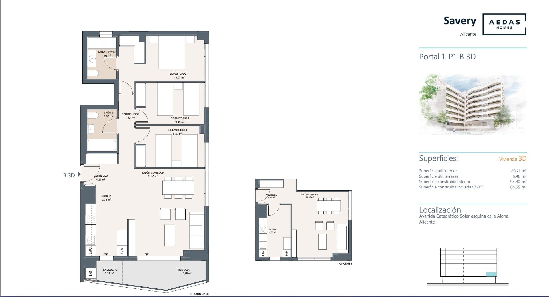 We present to you a bright and spacious apartment located on the first floor of the prestigious Savery residence, developed by AEDAS Homes, right in the center of Alicante, at the corner of Avenida Catedrático Soler and Calle Alona.