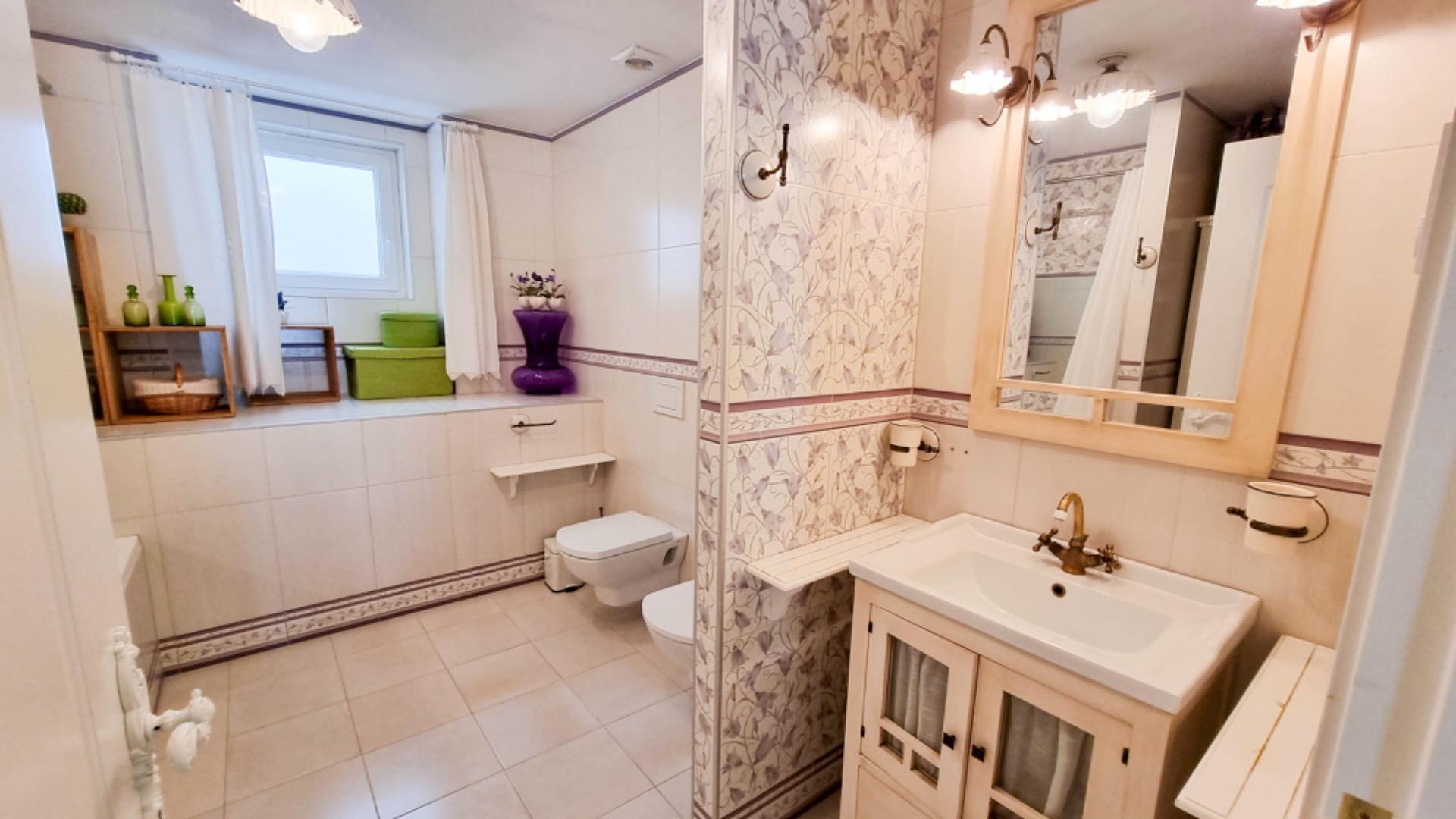 The two floors of the villa are designed in such a way that they can be independent from each other. Each floor has three spacious bedrooms, each with access to a terrace or garden. Each floor has a separate kitchen equipped with everything necessary.