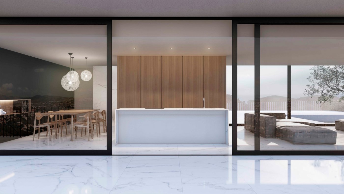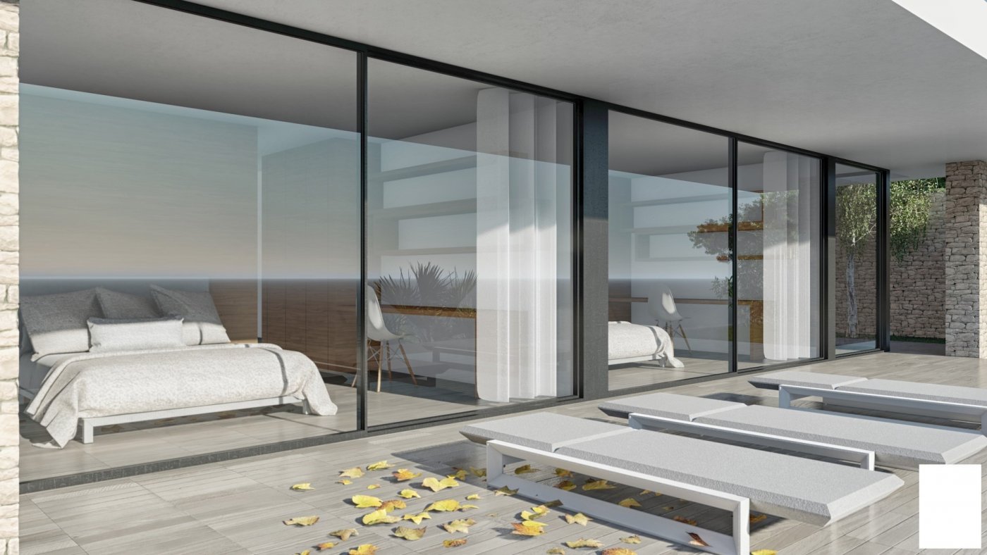 Un remanso de paz donde contemplar la naturaleza en un paisaje con el mar Mediterráneo como telón de fondo. Todo el territorio se concibe como un elemento más del proyecto. El respeto por el entorno y la naturaleza circundante, así como la maximización de la contemplación y el disfrute de este ambiente natural, son los factores clave que determinan los puntos de partida del diseño de esta vivienda.