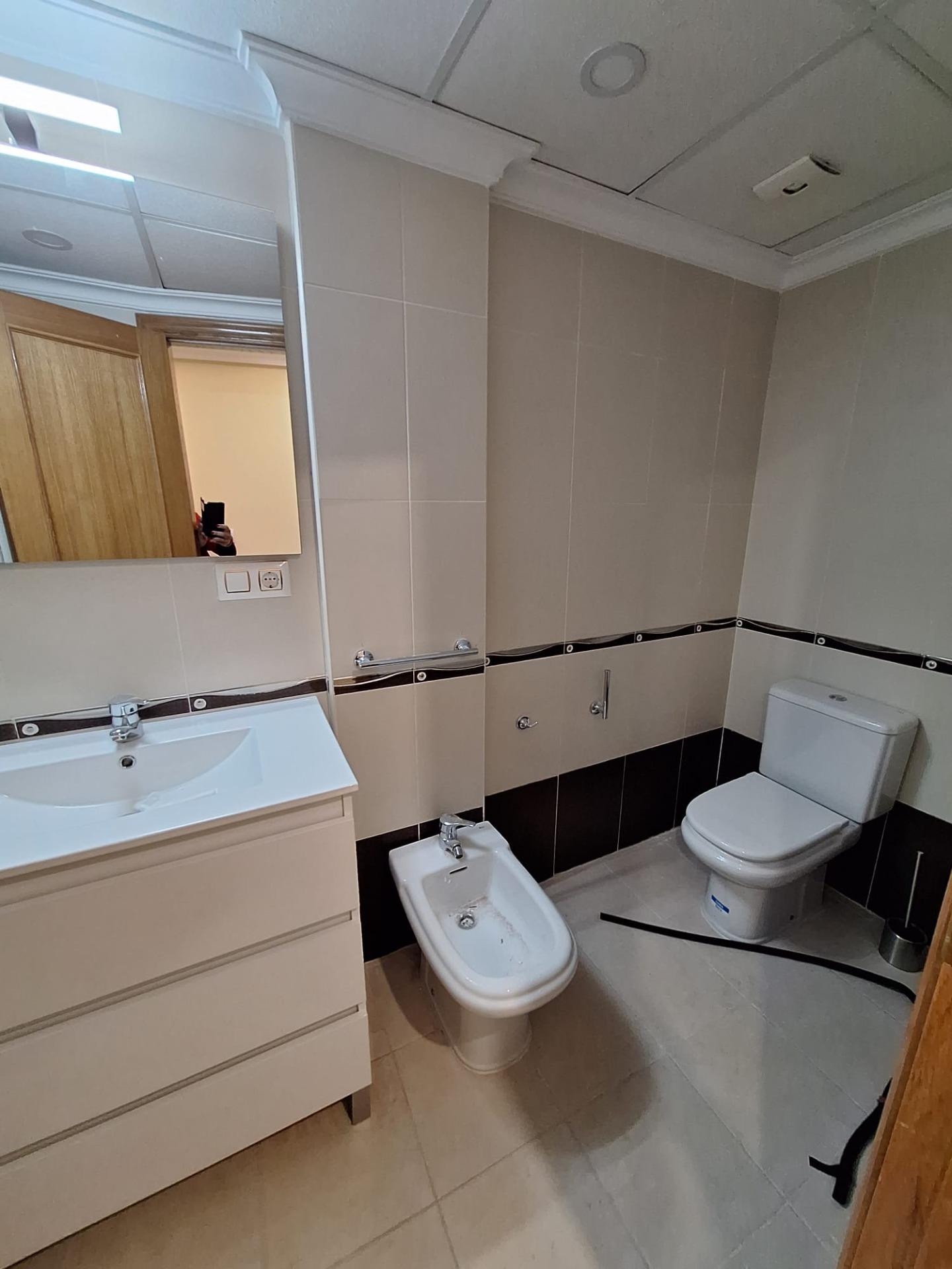 Inmobiliaria Alegria presents for sale a luxury property with unique qualities in the center of Torrevieja IMPERIAL BUILDING.Housing three bedrooms, ramp access to parking spaces in basement and direct communication to housing by elevator and stairs, exterior enclosure with double partition, thermal insulation and acistico with porespan 3 cm, oak interior carpentry, fitted closets in oak,lined inside, safe, marble flooring, kitchen and bathrooms with stoneware flooring, plastic paint, exterior carpentry and shutters in aluminum of 1 quality, double glazing glass with palilleria, kitchen with high and low cabinets in oak, granite countertop and stainless steel sink,hob, oven and electric heater 100 L, pre-installation of dishwasher, washing machine and dryer, mixer taps, armored wooden access door to housing, collective antenna VHF, UHF, FM, TV points in bedrooms, living room and kitchen, pre-installation of air conditioning ducts,pre-installation of telephone in bedrooms, living room and kitchen, facade finishes and stone walls with balustrades and artistic locksmithery on terrace, 2 elevators with luxury cabin, hallway luxuriously decorated with marble, painting and staircase in granite, video intercom, video door entry system.