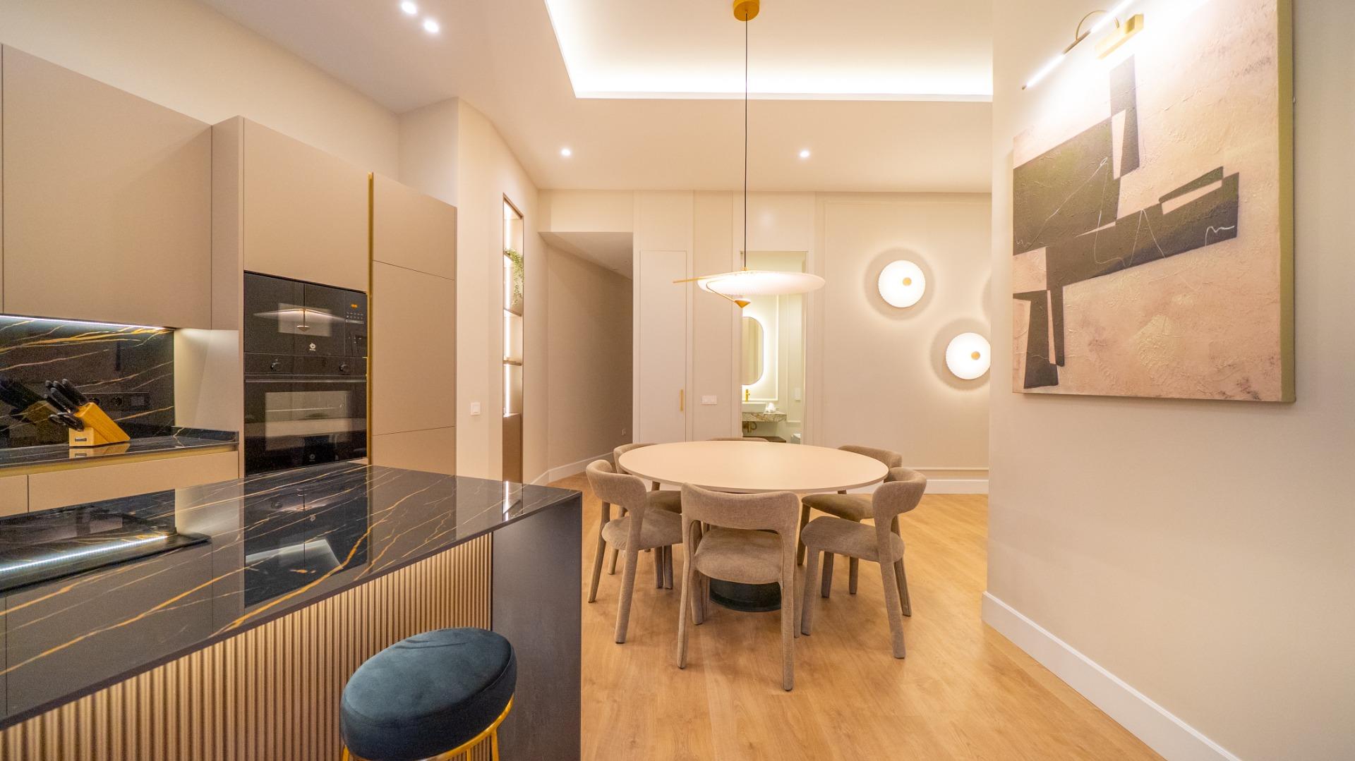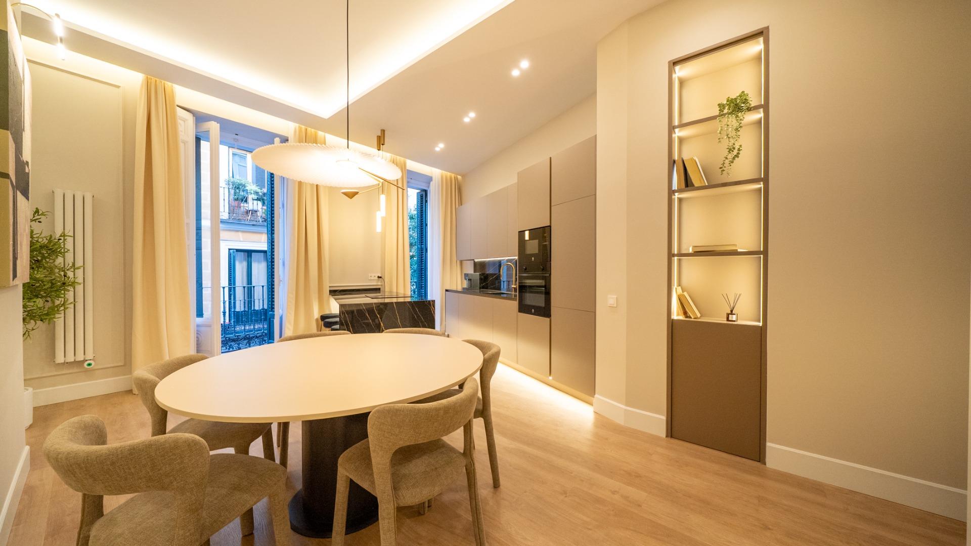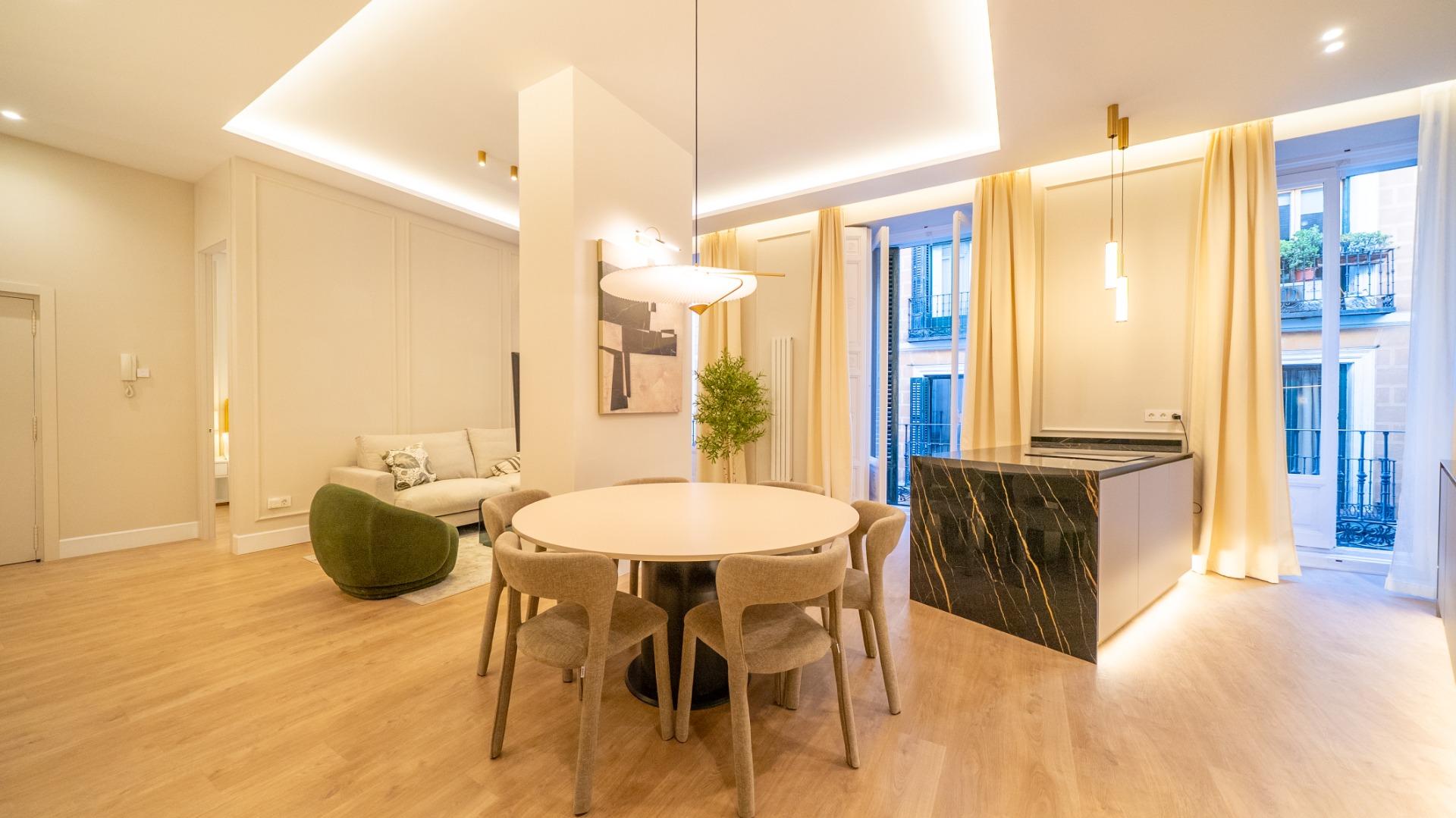 Located in the heart of Chueca, this premium fully refurbished apartment offers comfort, abundant natural light, and spacious living in every room. With 146 m², the property is entirely exterior and designed to optimize every area for functionality and style.
