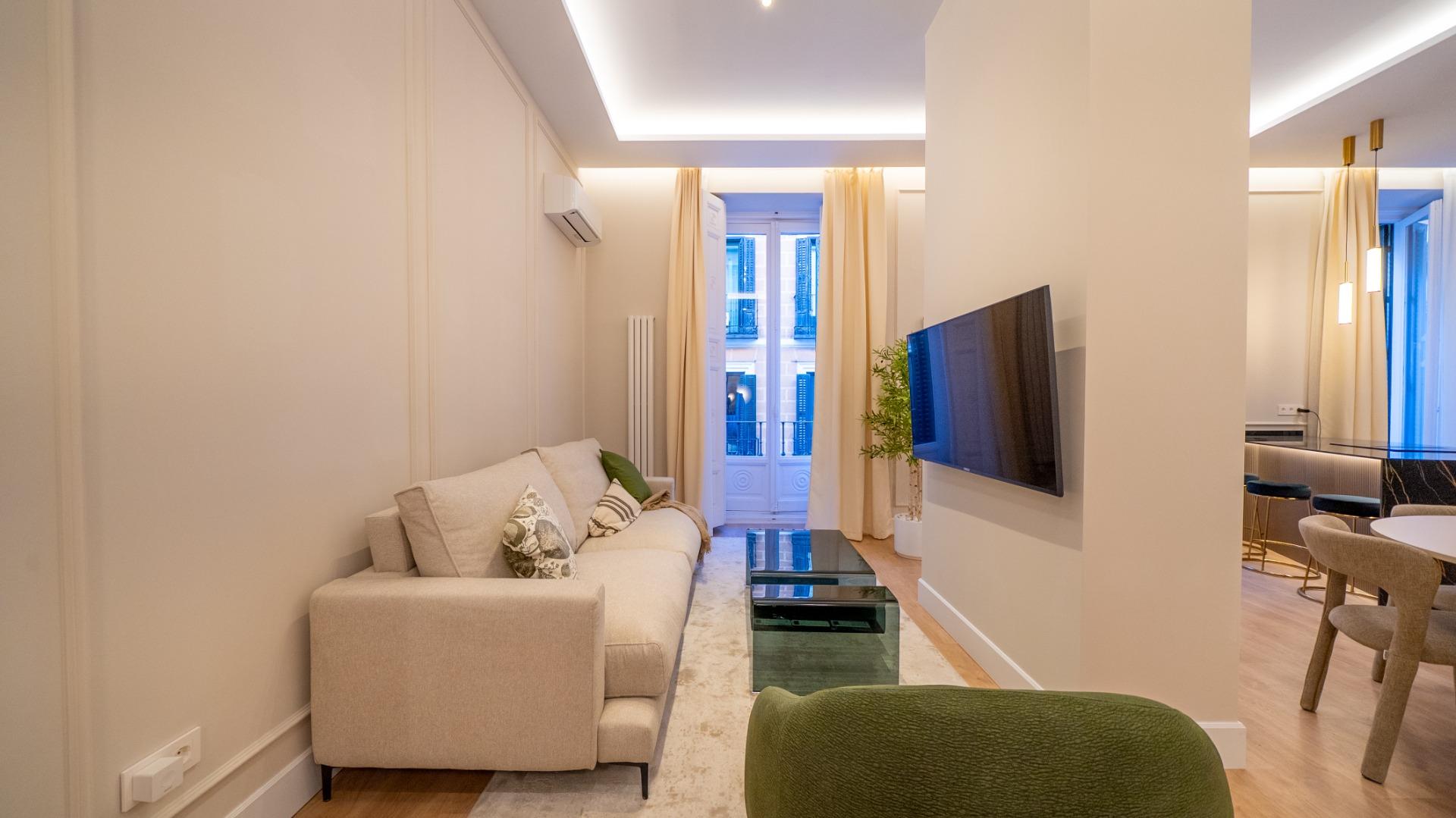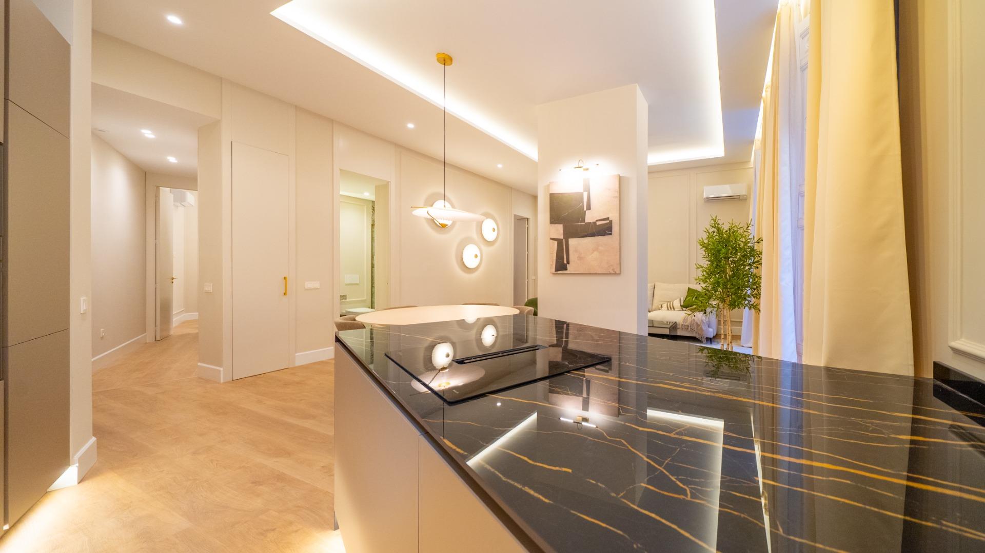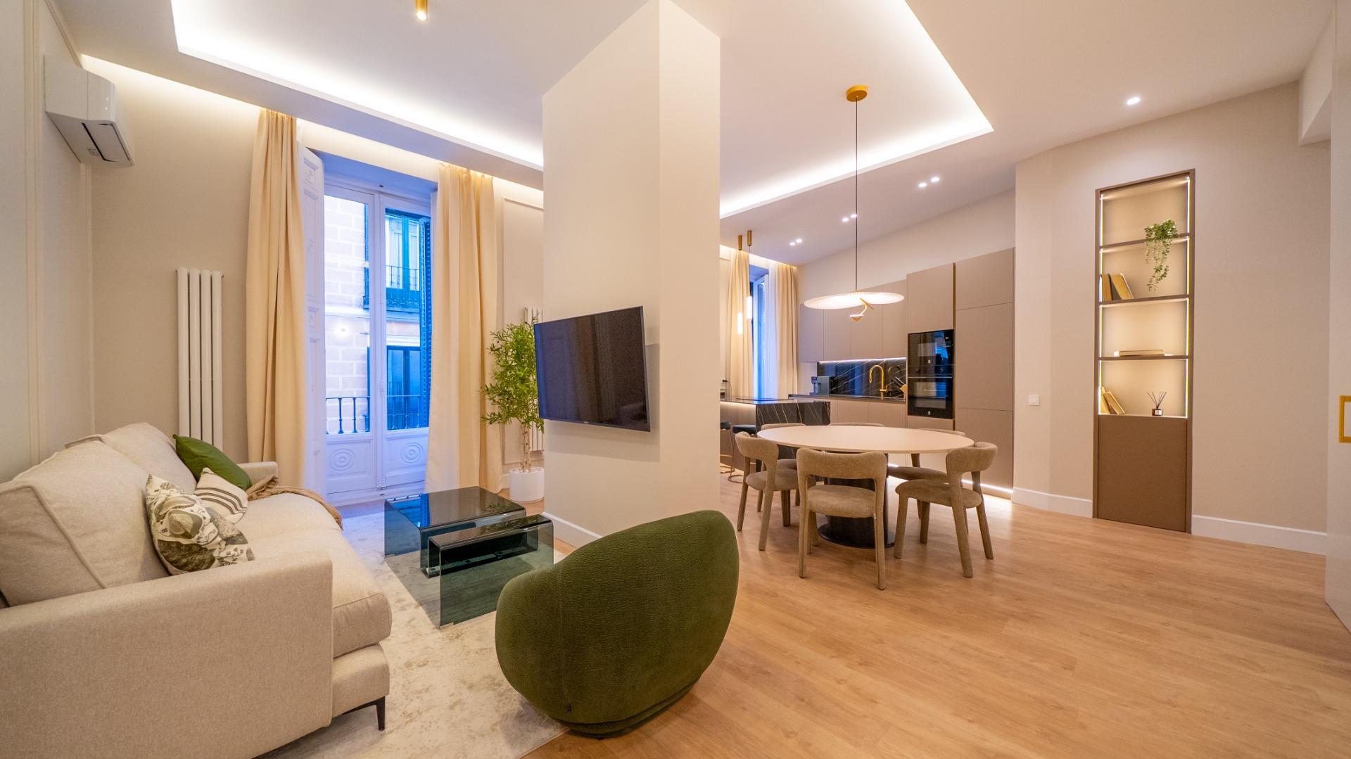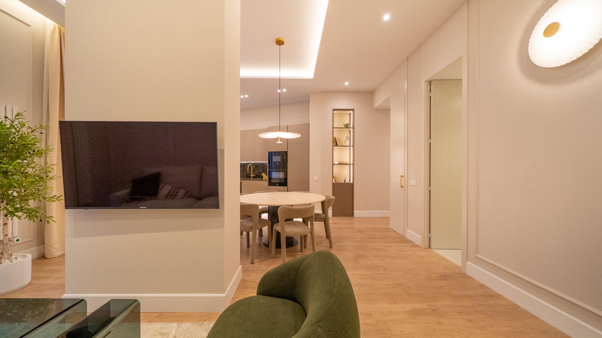 Located in the heart of Chueca, this premium fully refurbished apartment offers comfort, abundant natural light, and spacious living in every room. With 146 m², the property is entirely exterior and designed to optimize every area for functionality and style.