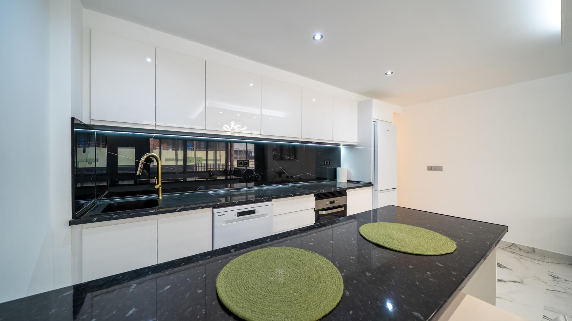 - Living room combined with open plan kitchen and a comfortable island. All with indirect lighting