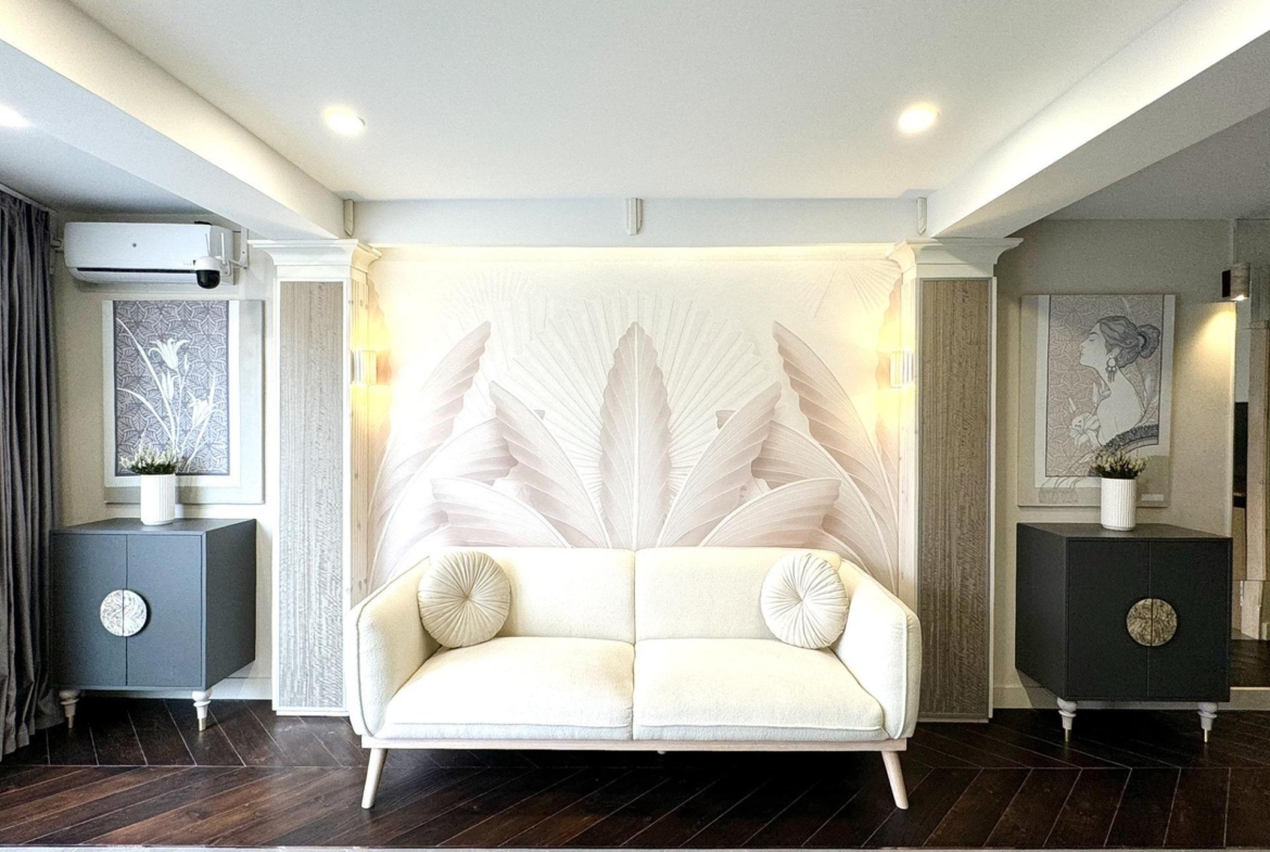 The apartment is sold fully furnished, including appliances, tableware, and decor — ready to move in.