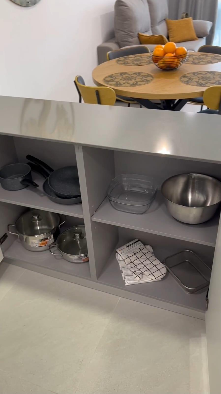 ✅ Bright living room combined with a fully equipped kitchen featuring **brand-new appliances and kitchenware**