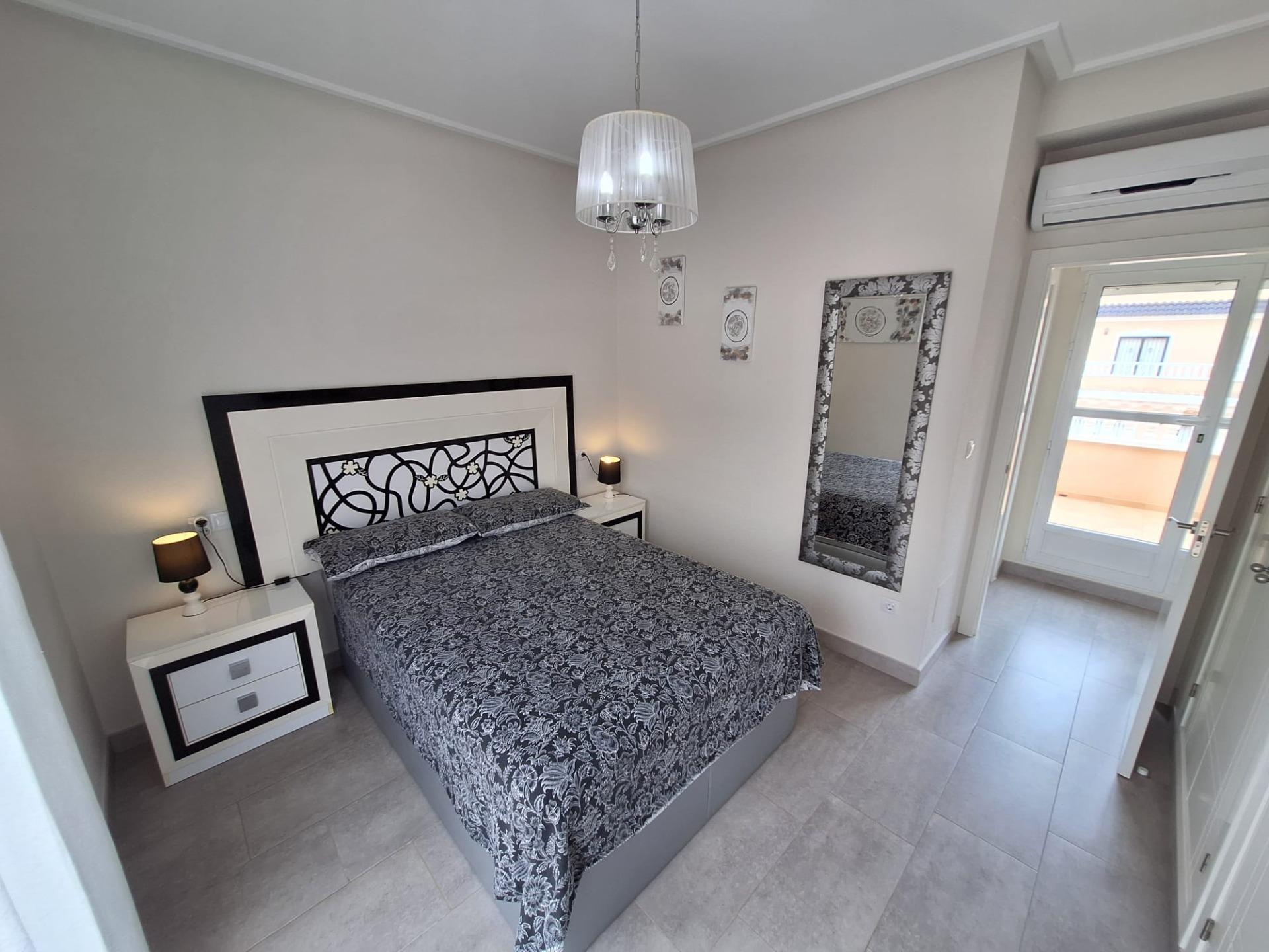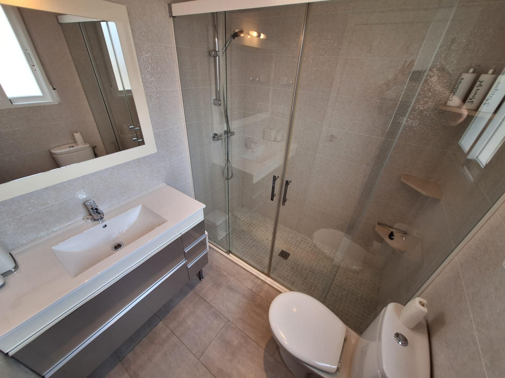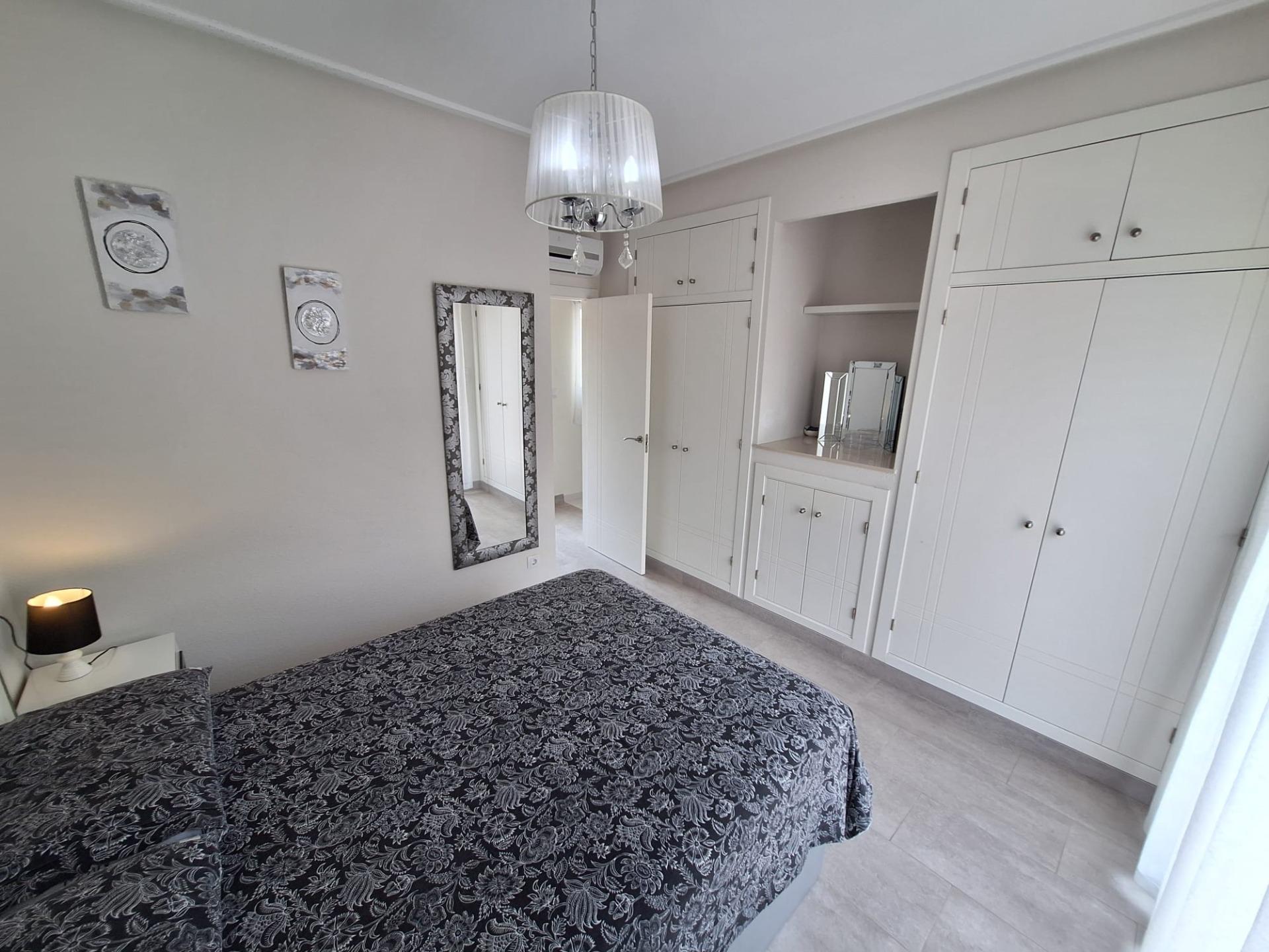 The property has been completely renovated and has two cozy bedrooms with spacious furniture and closets, two modern bathrooms, fully equipped kitchen with appliances, air conditioning, underfloor heating, dishwasher and washing machine. The bright and modern interiors create a pleasant and comfortable atmosphere. The house has two large furnished terraces, one of them with barbecue area, as well as a balcony. The gated community offers landscaped green areas and two communal swimming pools, one of them heated.