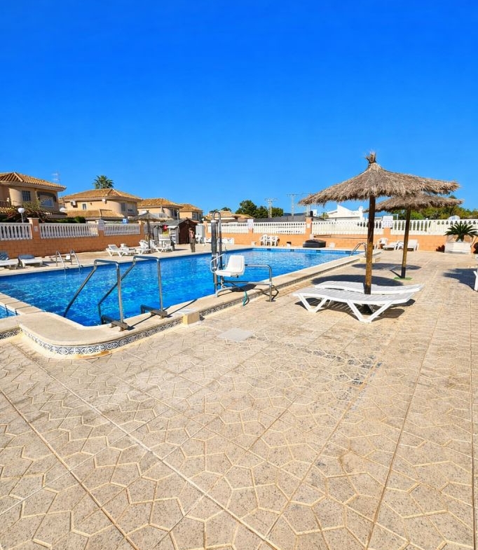 Enjoy the Mediterranean lifestyle in this charming top-floor bungalow of 65 m² located in Torrevieja, close to all essential amenities such as bars, restaurants, supermarkets, pharmacies, and shopping centers. Thanks to its south-facing orientation, the property benefits from natural sunlight all day long, creating bright and pleasant living spaces .This well-maintained home offers 2 bedrooms, 1 bathroom, a modern open-plan kitchen, and a sunny terrace perfect for relaxing outdoors or enjoying evening meals. In addition, the property features a private solarium, providing extra outdoor space to make the most of the warm climate. The bungalow is part of a residential complex with a communal swimming pool, ideal for cooling off during the summer months .The location offers excellent connectivity to AlicanteElche Airport, approximately 50 km away (4555 minutes by car) . Type Top-floor bungalow Location Torrevieja Built area 65 m² Orientation South Bedrooms 2 Bathroom 1 Kitchen Open-plan Terrace Yes Solarium Yes Communal swimming pool Yes Furnished and equipped with appliances Price €132,000 IBI €92 Community fees €90 quarterlyPicture your days under the sun, with everything you need within easy reach. Contact us today to arrange a viewing .