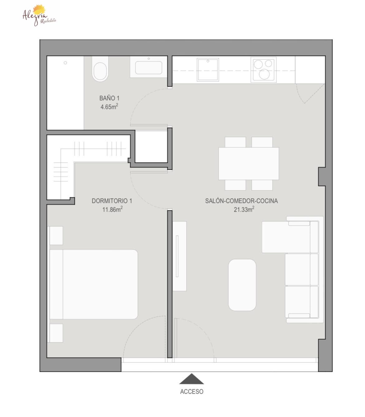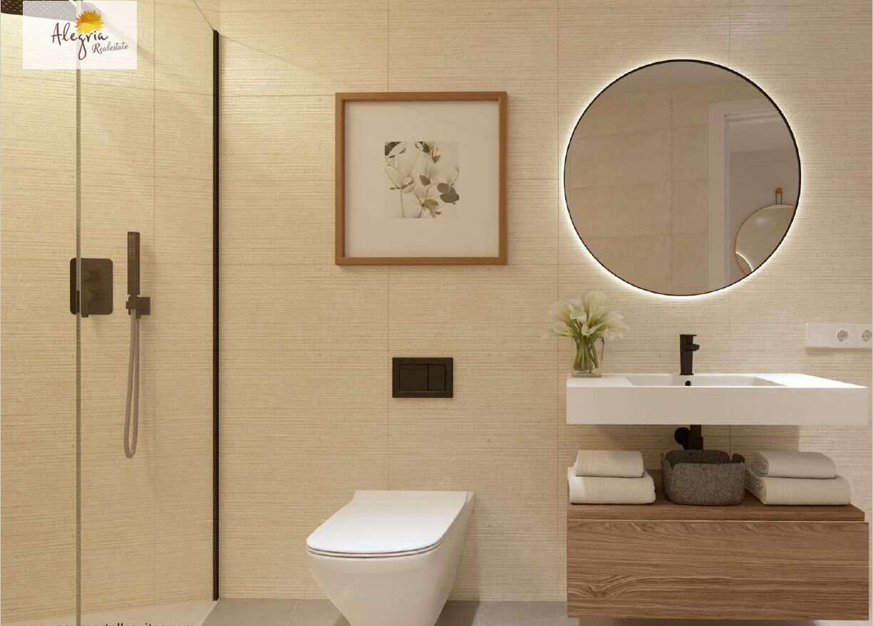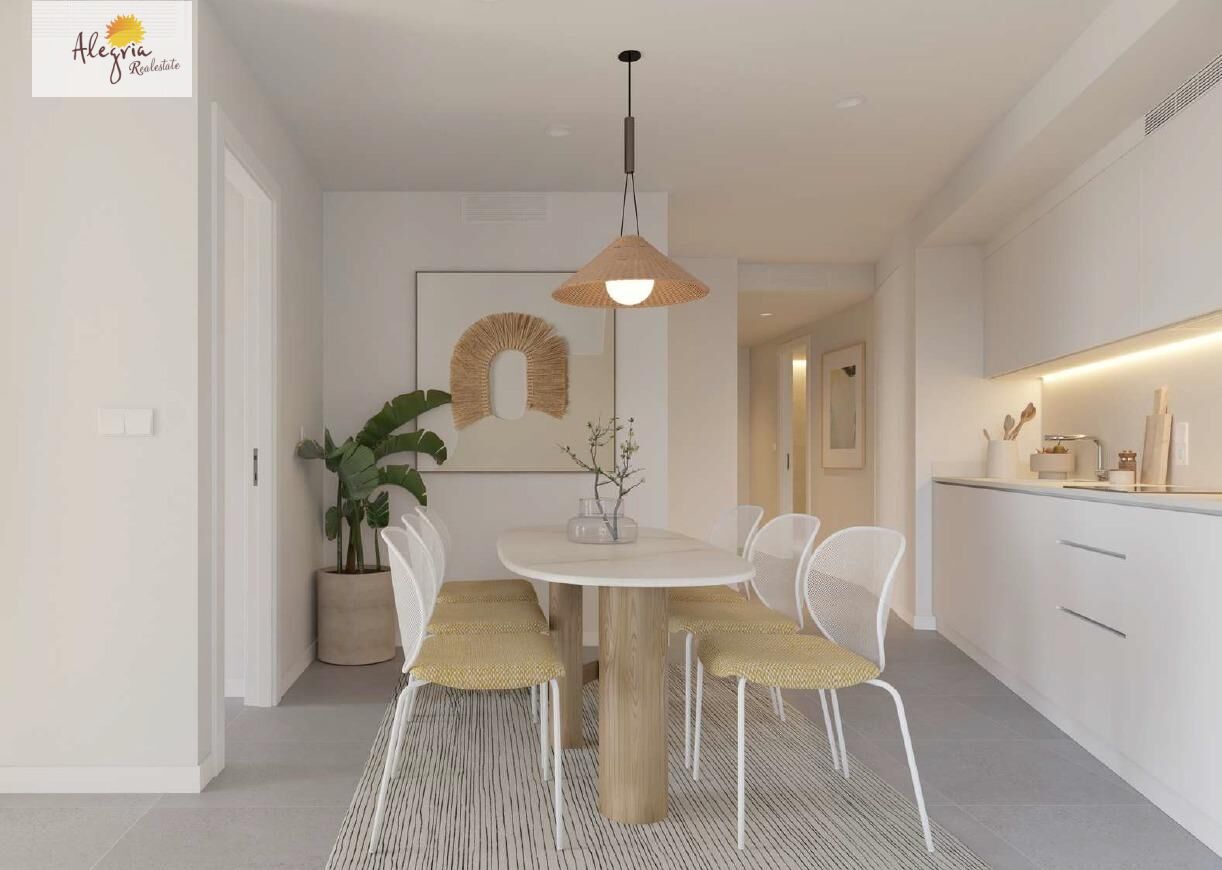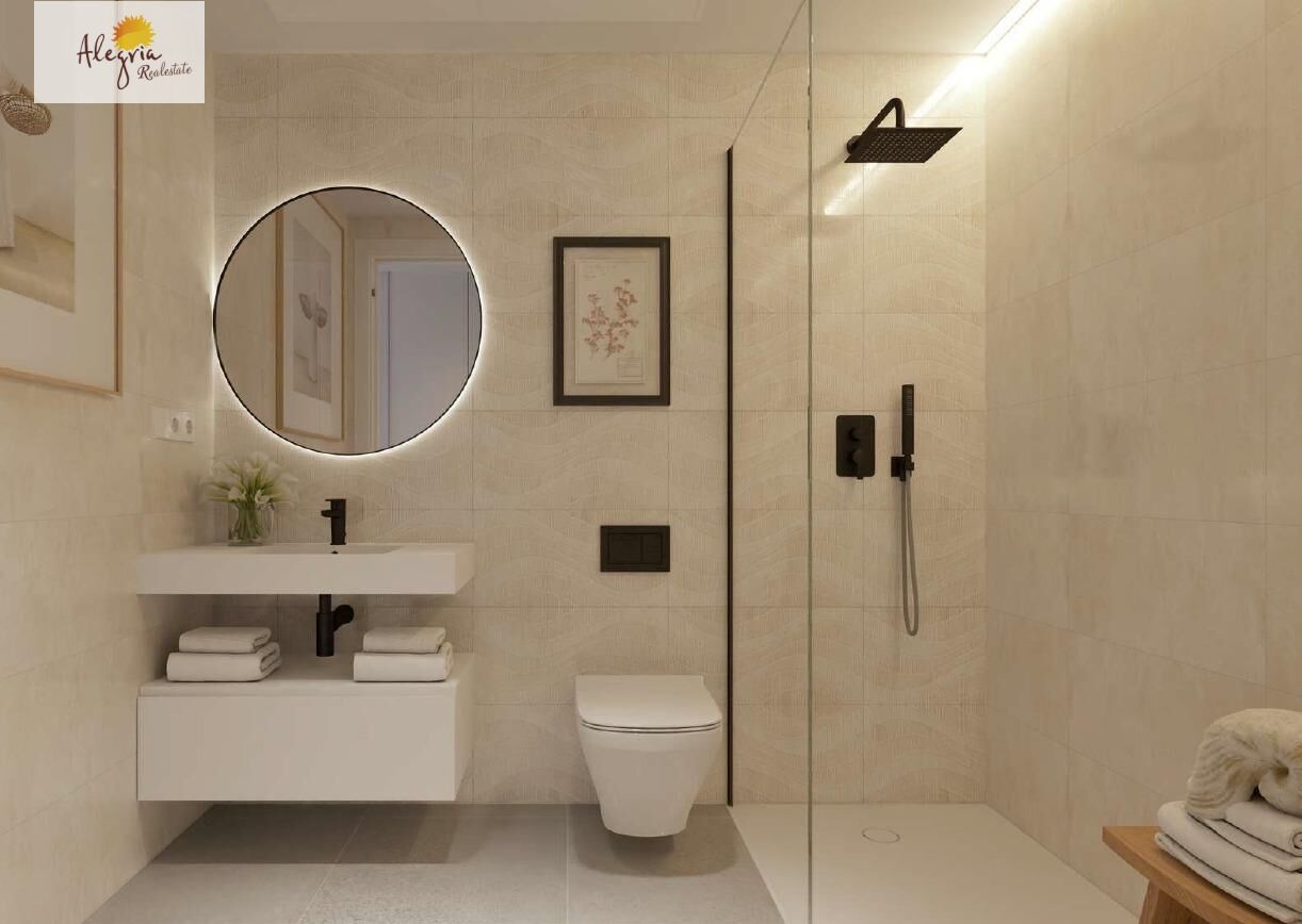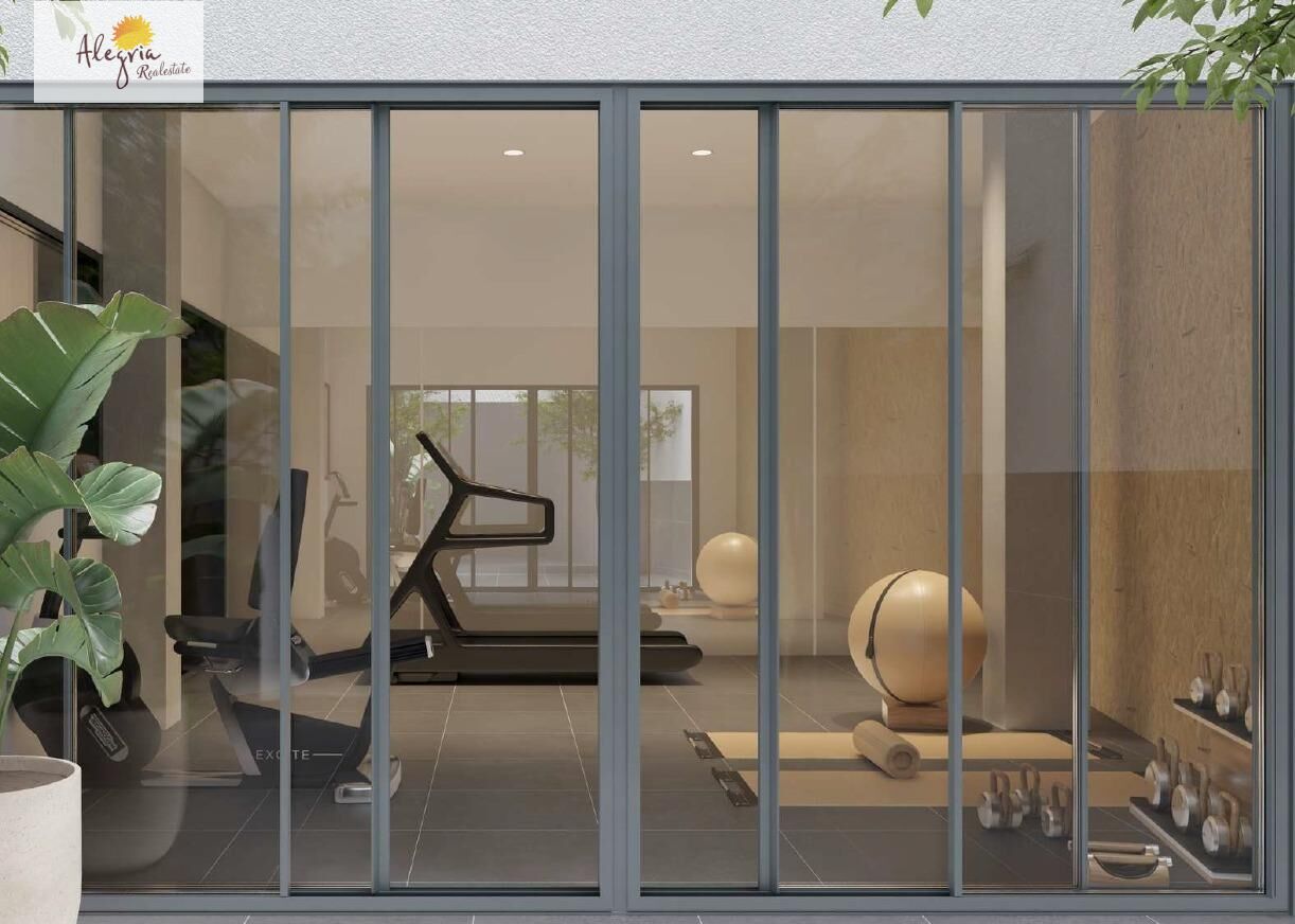 ALEGRIA REAL ESTATE presents this modern, new residential complex and your last chance to purchase a ground-floor apartment, featuring one bedroom, a bathroom, and a living room, kitchen, and dining area. The apartment has a separate entrance, making it ideal for short-term rentals.