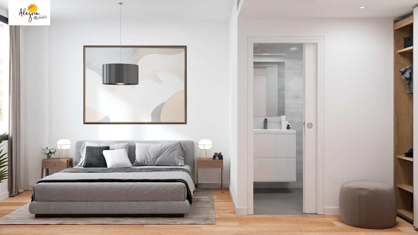 and another on the 1st floor, 3 bedrooms / 3 bathrooms, 106 m² of built area with central heating, terrace, beautiful views on 3 sides: pedestrian street to the southwest, common areas and the pool to the southeast, and neighboring developments to the northeast.