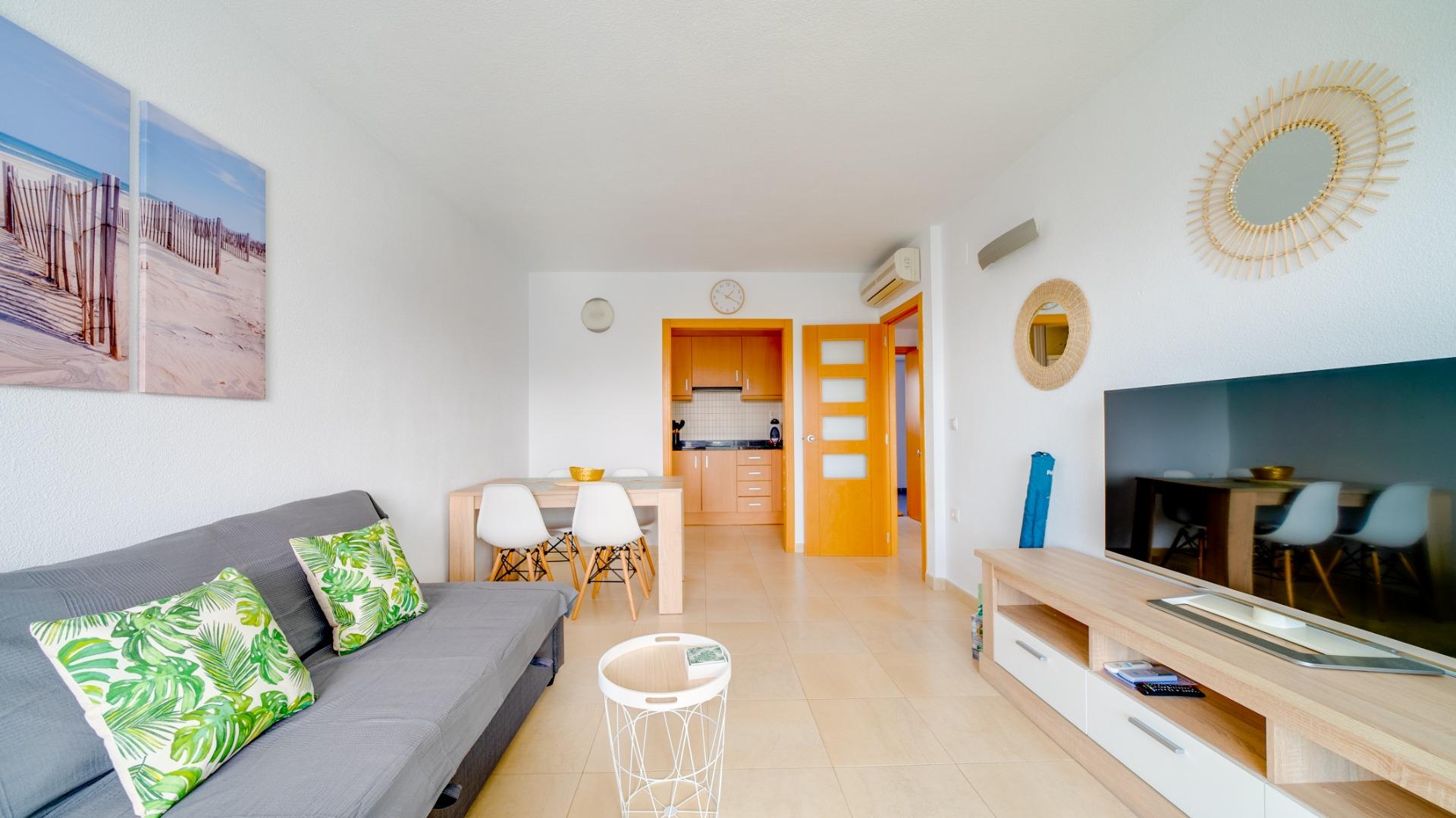 This flat is equipped with air conditioning, fitted wardrobes and even access for people with reduced mobility (PRM), providing all the necessary comforts during your stay. The urbanization where it is located offers a shared swimming pool surrounded by well-kept gardens; it also has children's playgrounds ideal for families.