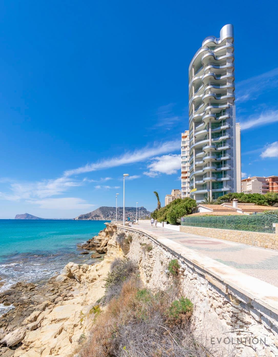 Extraordinary project, elegant and impeccable from the point of view of the architecture of the future and the atmosphere of the innovative present, the building is located in the cozy and picturesque town of Calpe on the front line of the Mediterranean Sea, 800 meters from the Peñón Natural Park of Ifach.