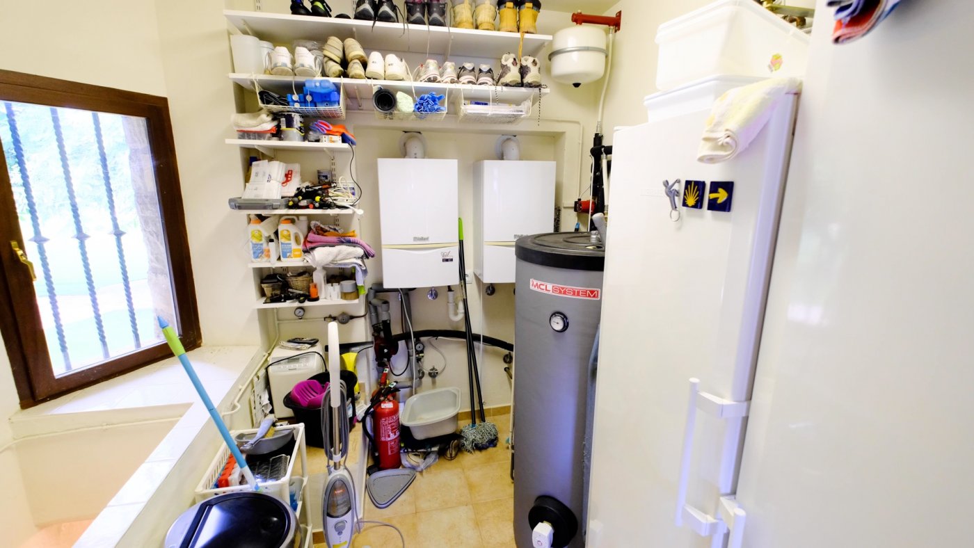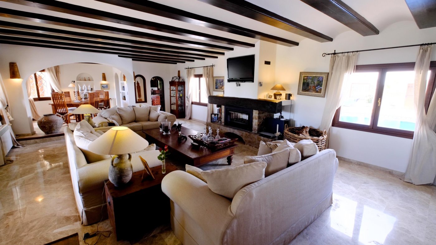 Luxurious manor house for sale on the coast of Benissa with an area of 600 square meters! The house is completely private, without neighbors and unnecessary noise with a beautiful view of the sea and the whole city of Moraira. The house has 4 bedrooms, 5 bathrooms, one with a jacuzzi, a kitchen, two living rooms, two dining rooms, two wood burning fireplaces, a terrace and two garages. In the courtyard there is a 6.50 X 13 meter swimming pool. The house has three hot water systems - solar, electric and gas. The entire plot is a designer garden, fully automated. The views from the house open to the sea, mountains and Moraira!
