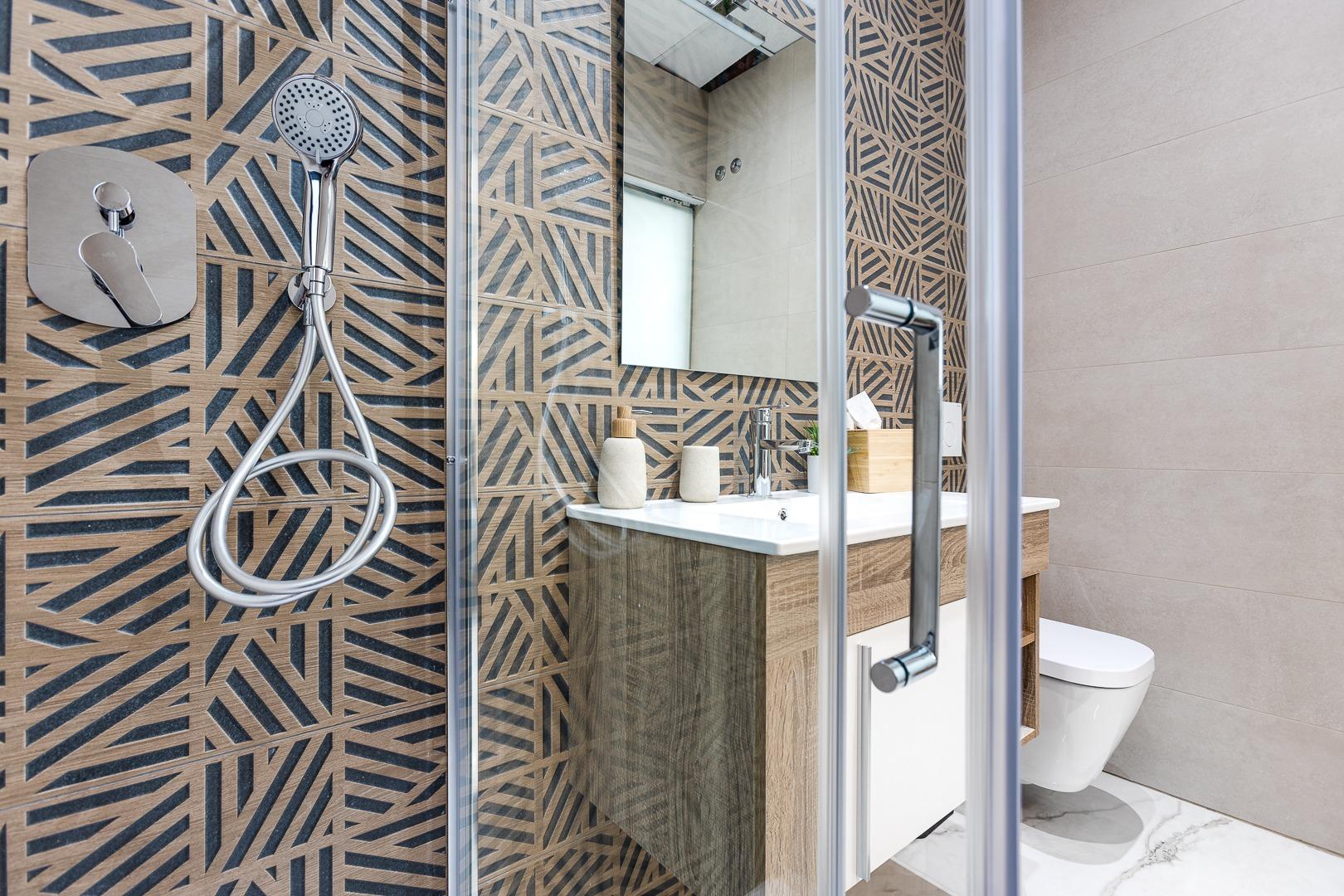 * SHOWER SCREENS, WASHBASIN UNIT AND MIRROR.