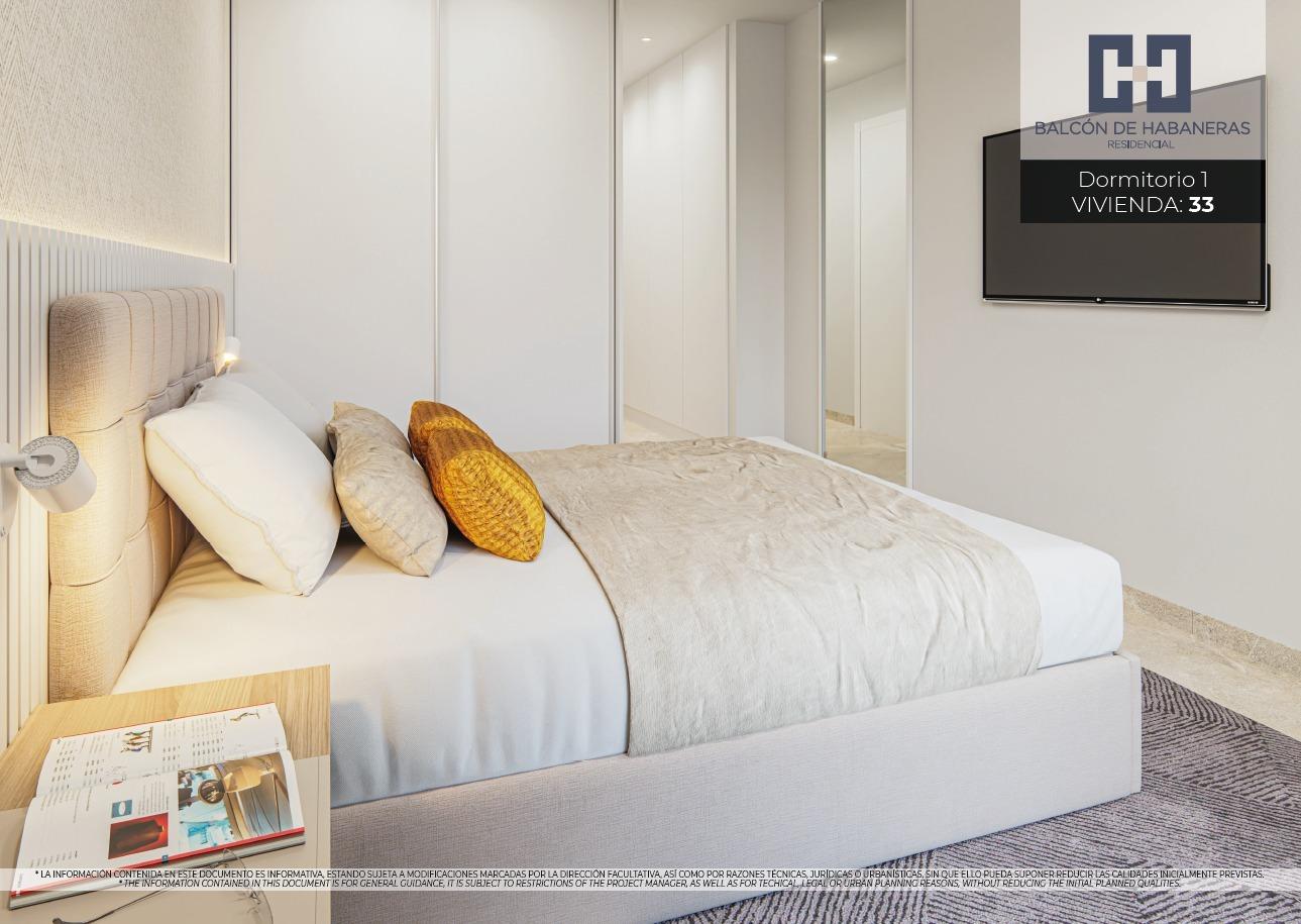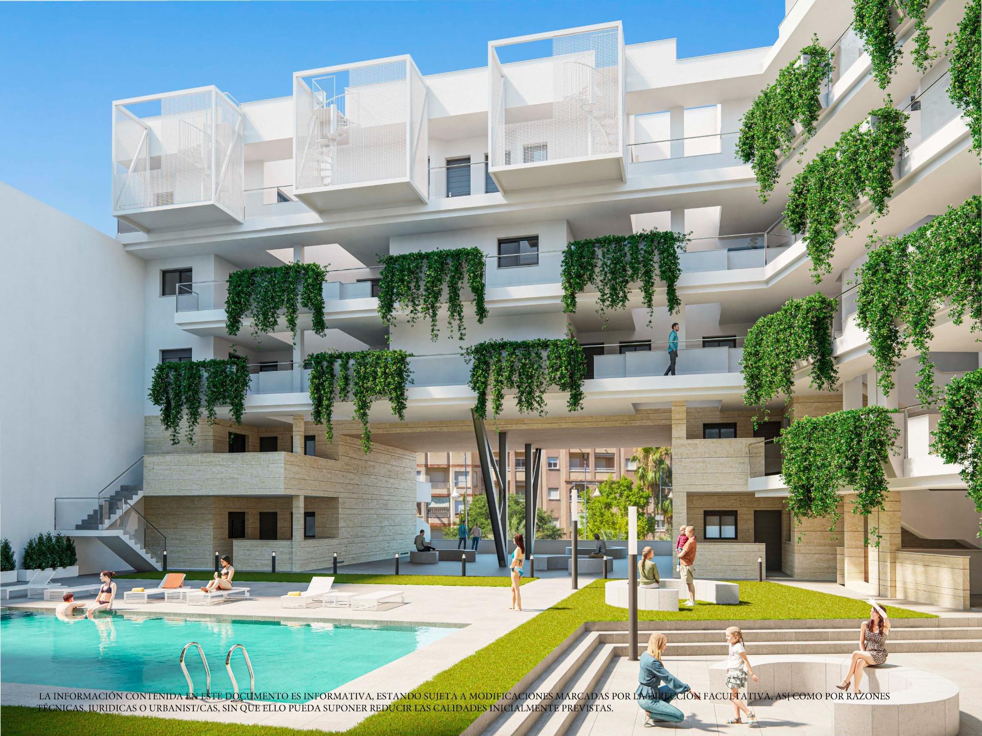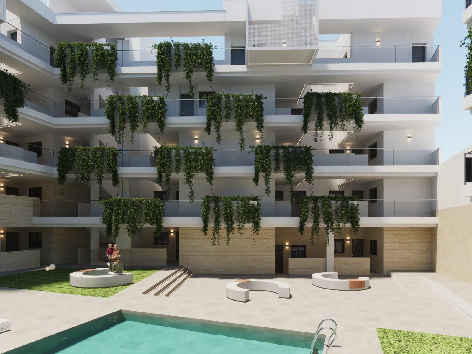 1. Apartment in Torrevieja near the bus station, 98 sq. m., 500 m from the beach, 2 double bedrooms, 2 bathrooms, new construction, south-facing, aluminum exterior window frames with double-pane glass.
