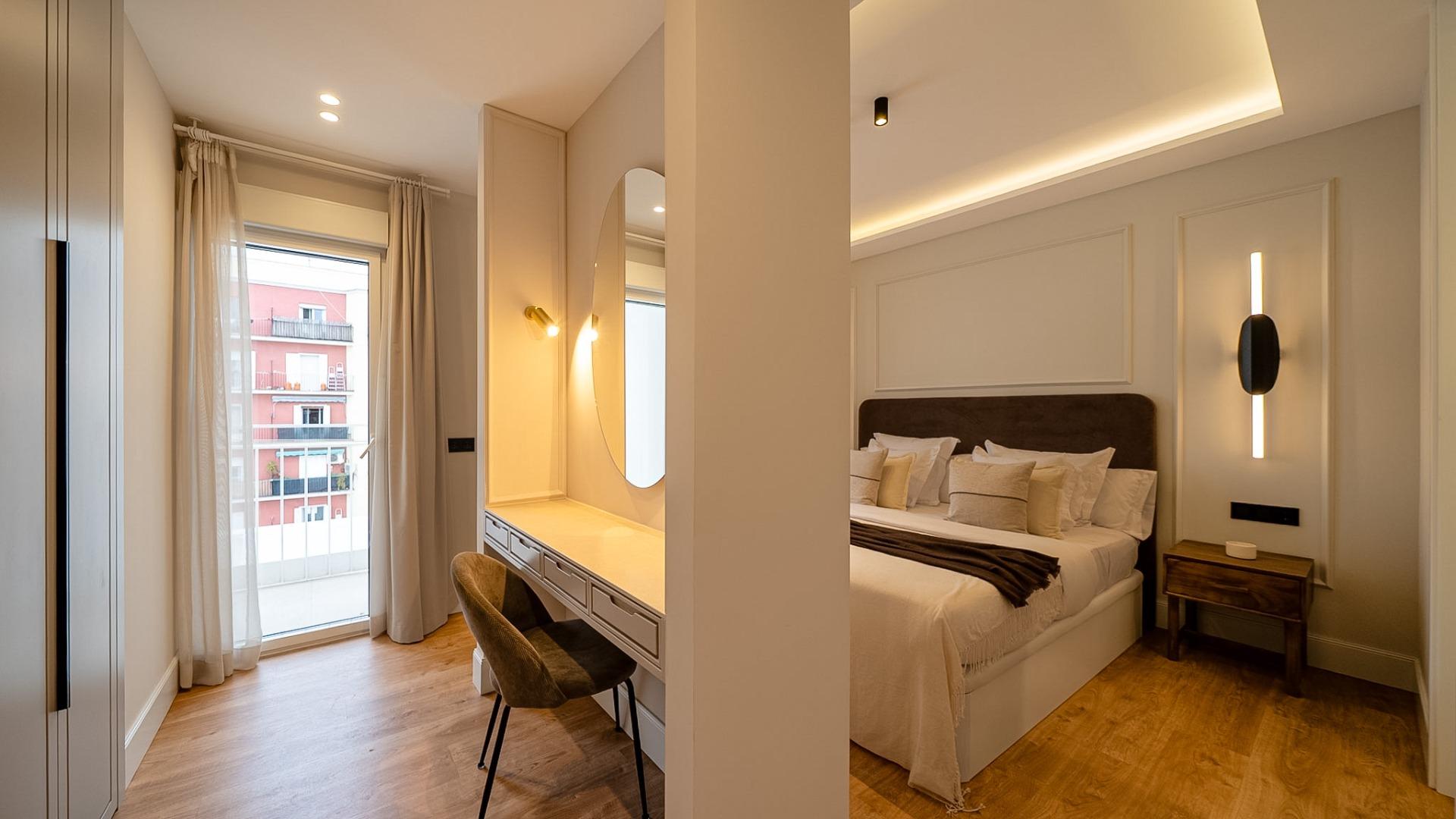 The apartment features three spacious double bedrooms and two full bathrooms, offering a well-balanced layout designed for comfortable city living. The recent renovation showcases a contemporary style with high-quality finishes, creating bright and welcoming interiors throughout the home.