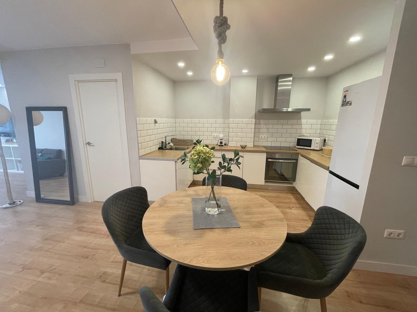 The house is very bright and has a comfortable distribution. It has a spacious living room with studio kitchen, fully equipped and designed to offer comfort and functionality. The apartment offers two large bedrooms, one of them with en suite bathroom, providing privacy and comfort. It also has a large storage room / pantry and a guest toilet.
