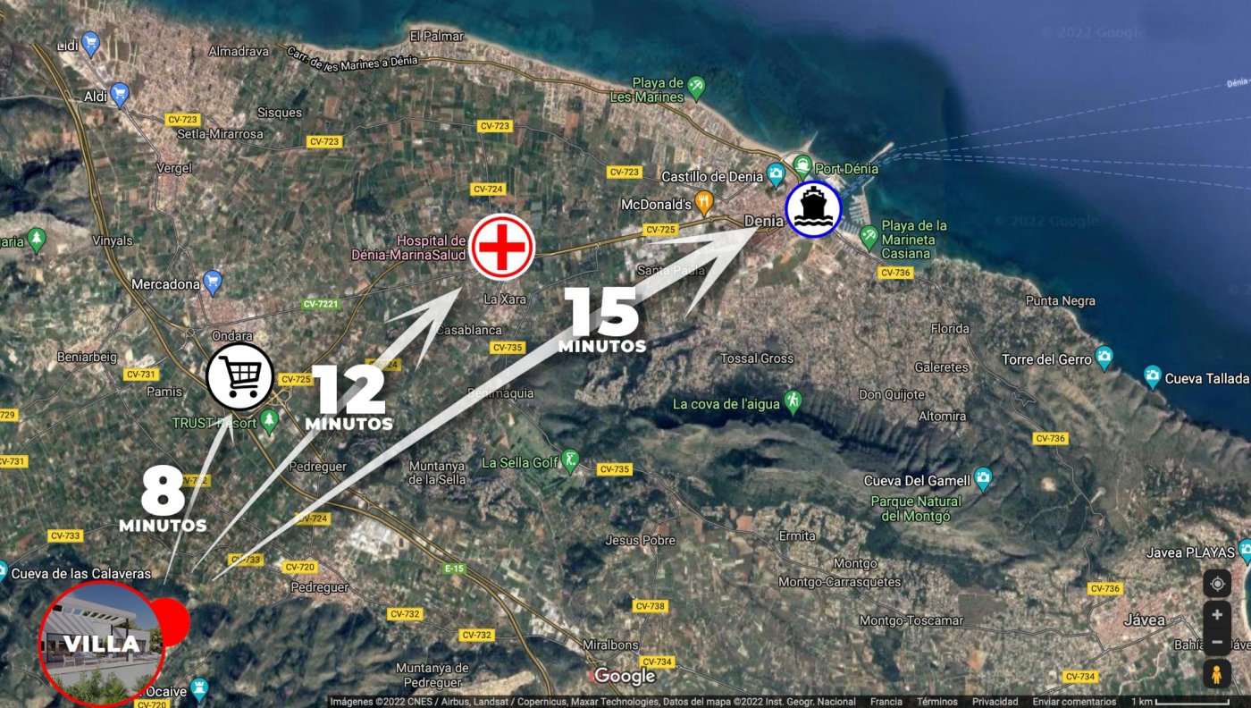 The location of this project is fantastic, the village of Pedreguer with basic services is located just 1 km away, the Portal de la Marina shopping center with all services such as restaurants, stores, supermarkets, cinema, etc., just 6 km away and the cities of Denia and Javea with its spectacular beaches and a wide range of leisure activities at 12 km and respectively 15 km.