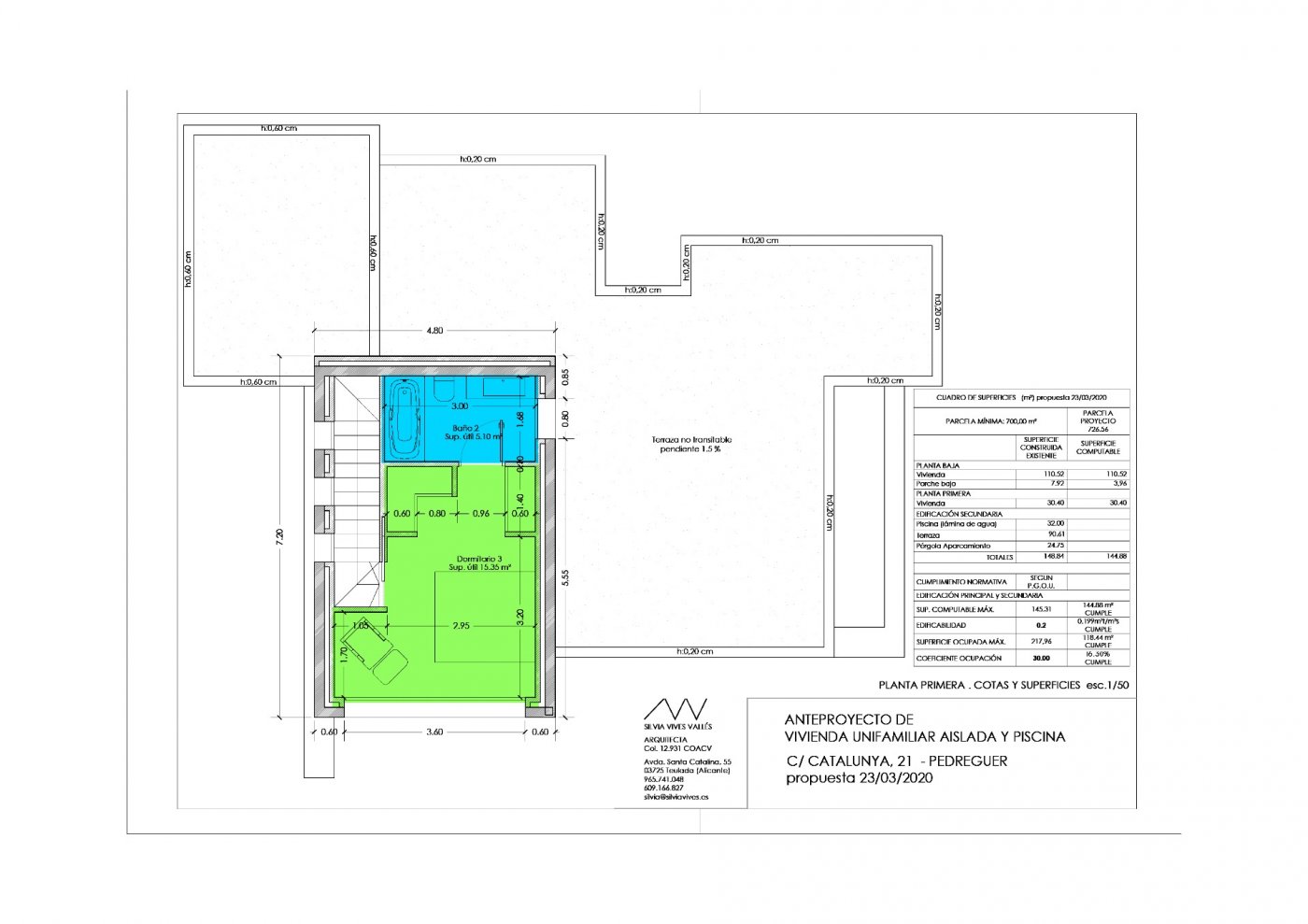 This property consists of 141 m² of living space on two floors, 90,61 m² of terraces, 24,75 m² of pergola, and 32 m² of swimming pool on a plot of 727 m².