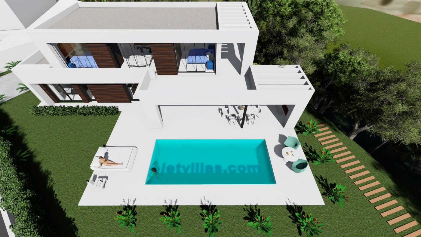 It includes 4 bedrooms, 3 bathrooms, living room-kitchen, large terraces, parking for 2 cars, garden and own pool.