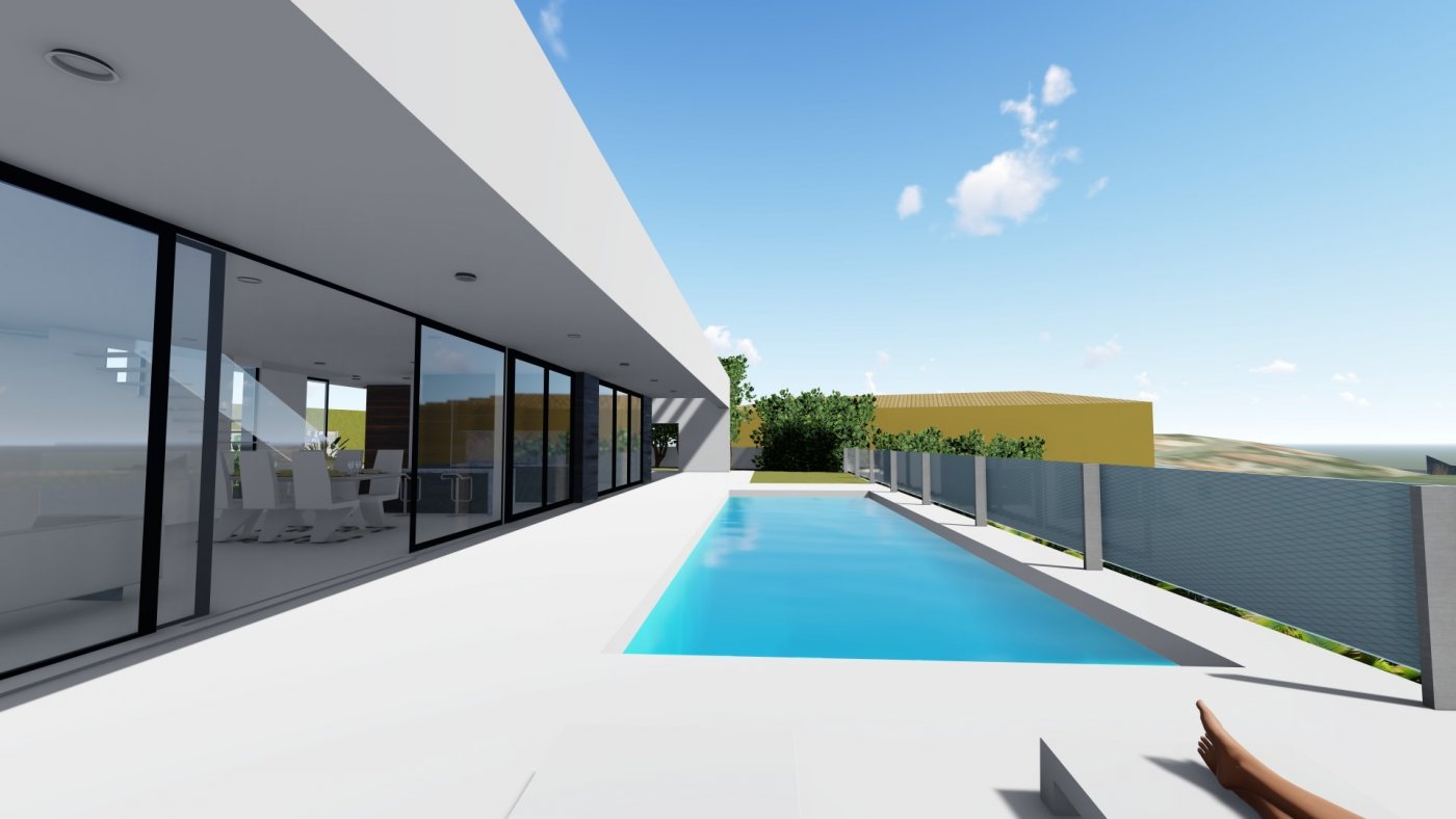 It includes 4 bedrooms, 3 bathrooms, living room-kitchen, large terraces, basement with garage for 2 cars, garden and own pool.