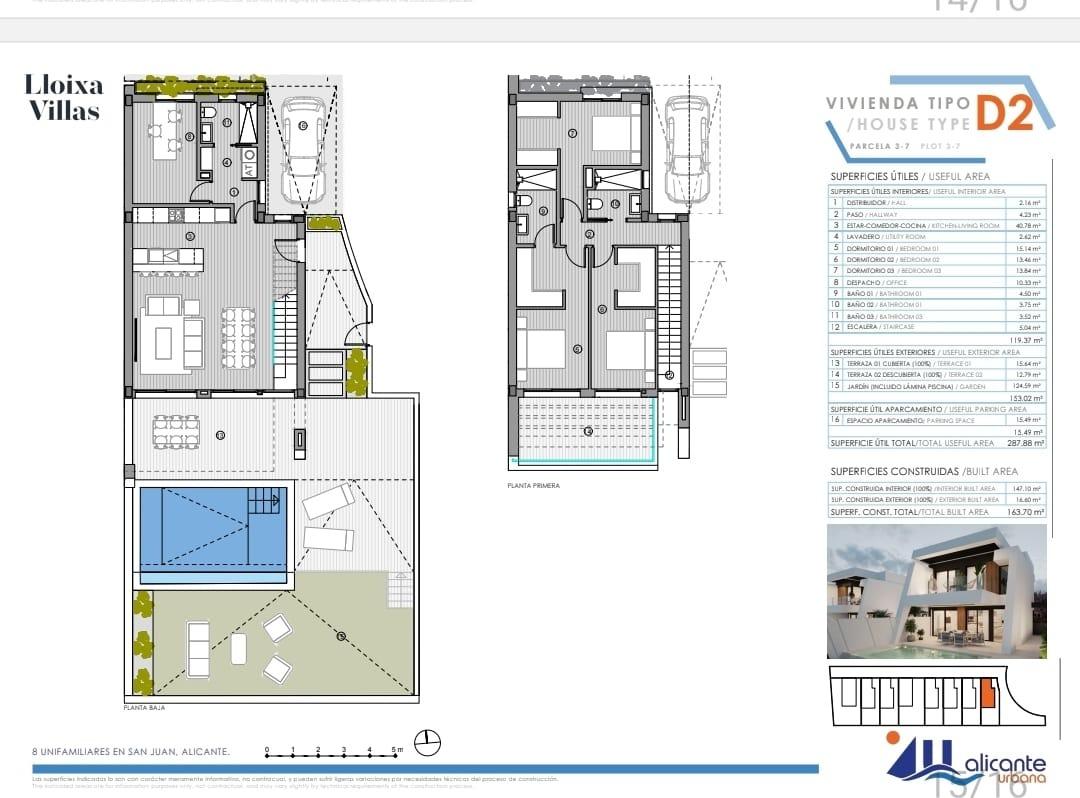 Residential Lloixa Villas, is a set of 8 exclusive single-family homes, with an attractive and modern architectural design, nestled in a quiet area to reside, just steps from the beach, the Hospital de San Juan, the University Miguel Hernandez, golf course and close to shopping and entertainment areas. Its location is ideal: 5 minutes from the A-7 and 20 minutes from the airport.