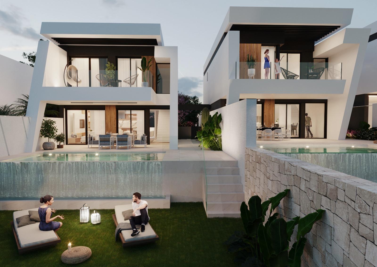 Each villa has four bedrooms, three bathrooms, a large living room with integrated kitchen, private infinity pool, garden with artificial grass, large terrace and parking.