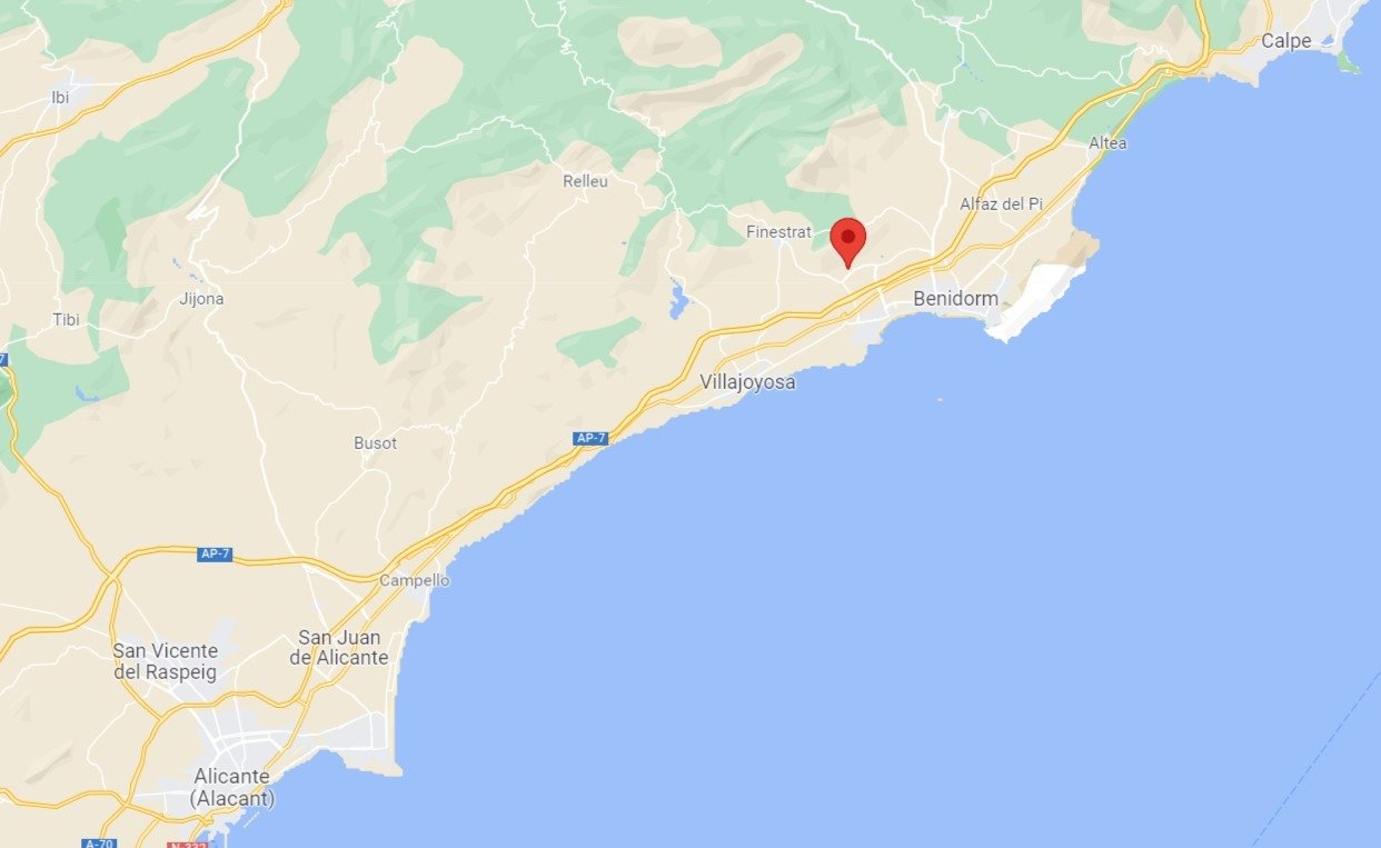 Located in the urbanization Sierra Cortina de Finestrat, Benidorm, Costa Blanca. Very well connected by freeway and TRAM. At 10 minutes from the center of Benidorm and the beach, and 30 minutes from Alicante.
