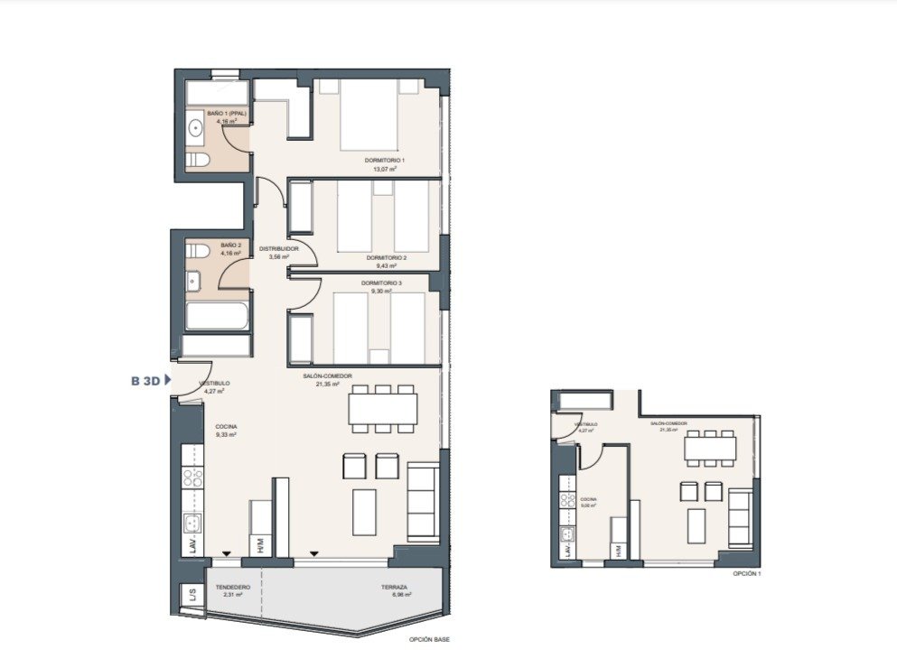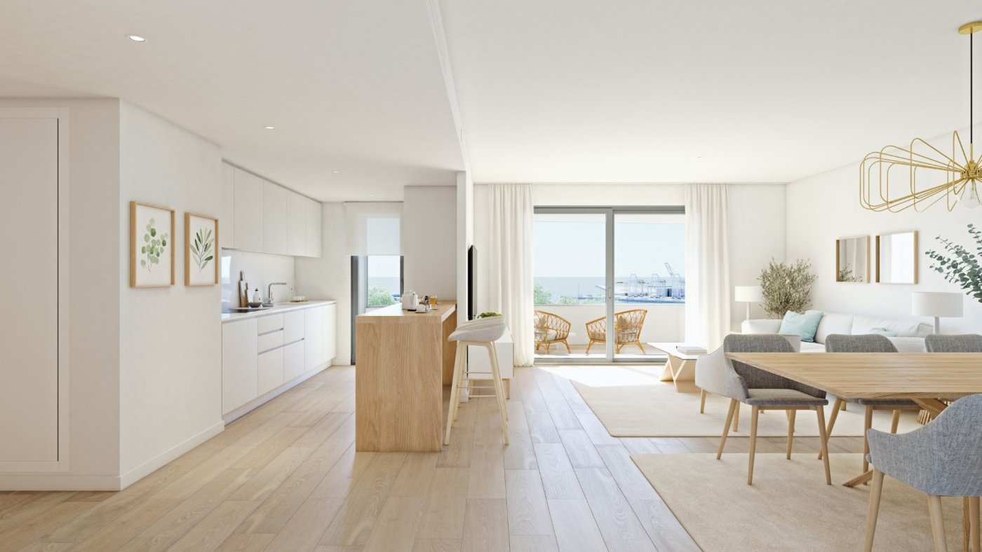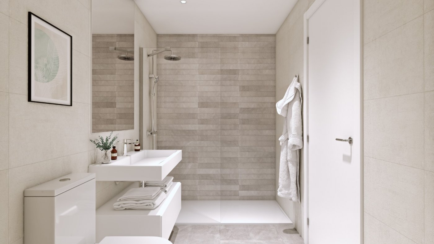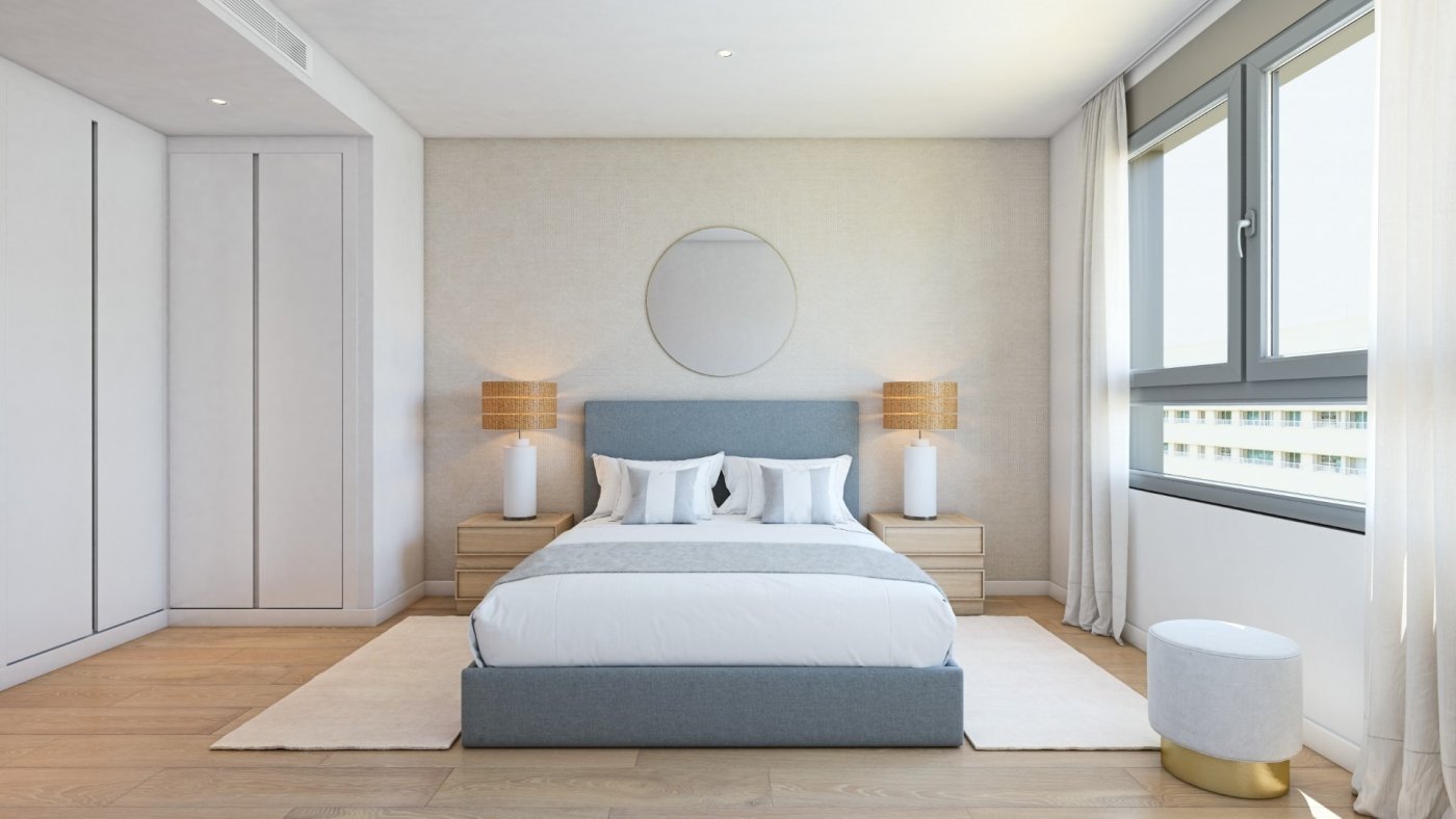 New build apartments on the Golden Mile, between the Benalúa neighborhood and the Port. They include 3 bedrooms, 2 bathrooms, a living room with an open-plan kitchen, and a terrace. Parking space and storage room included.