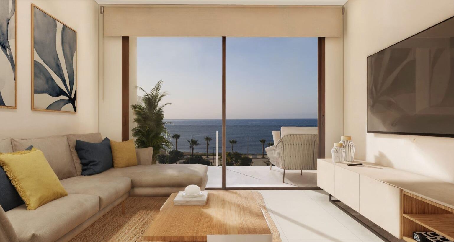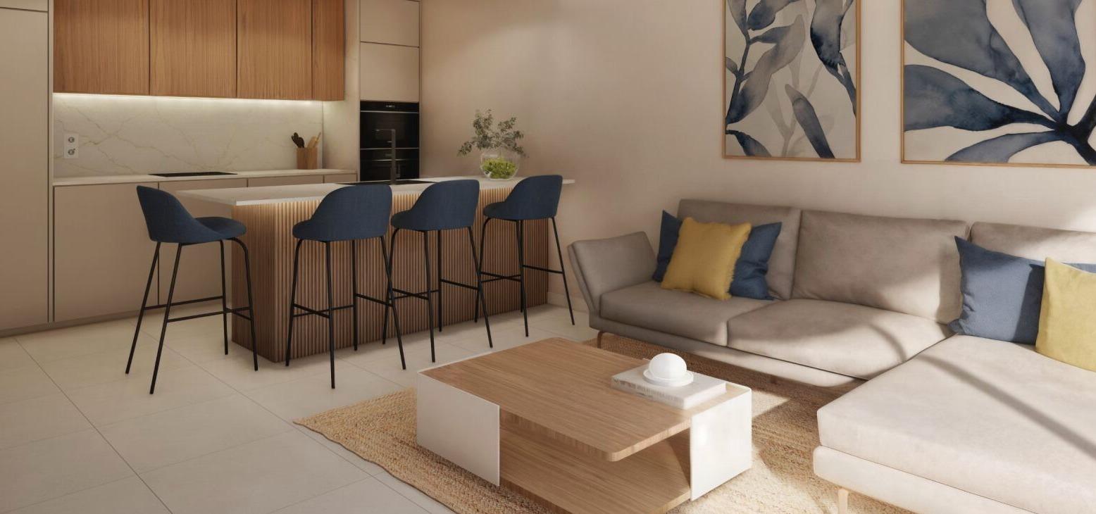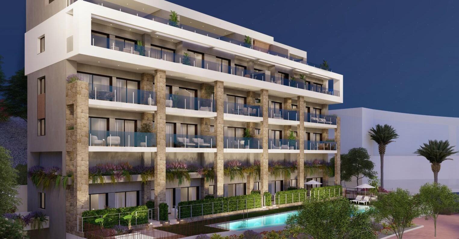 The apartments, with 1 and 2 bedrooms, stand out for their large terraces of up to 70 m², panoramic sea views, and carefully designed modern Mediterranean architecture.