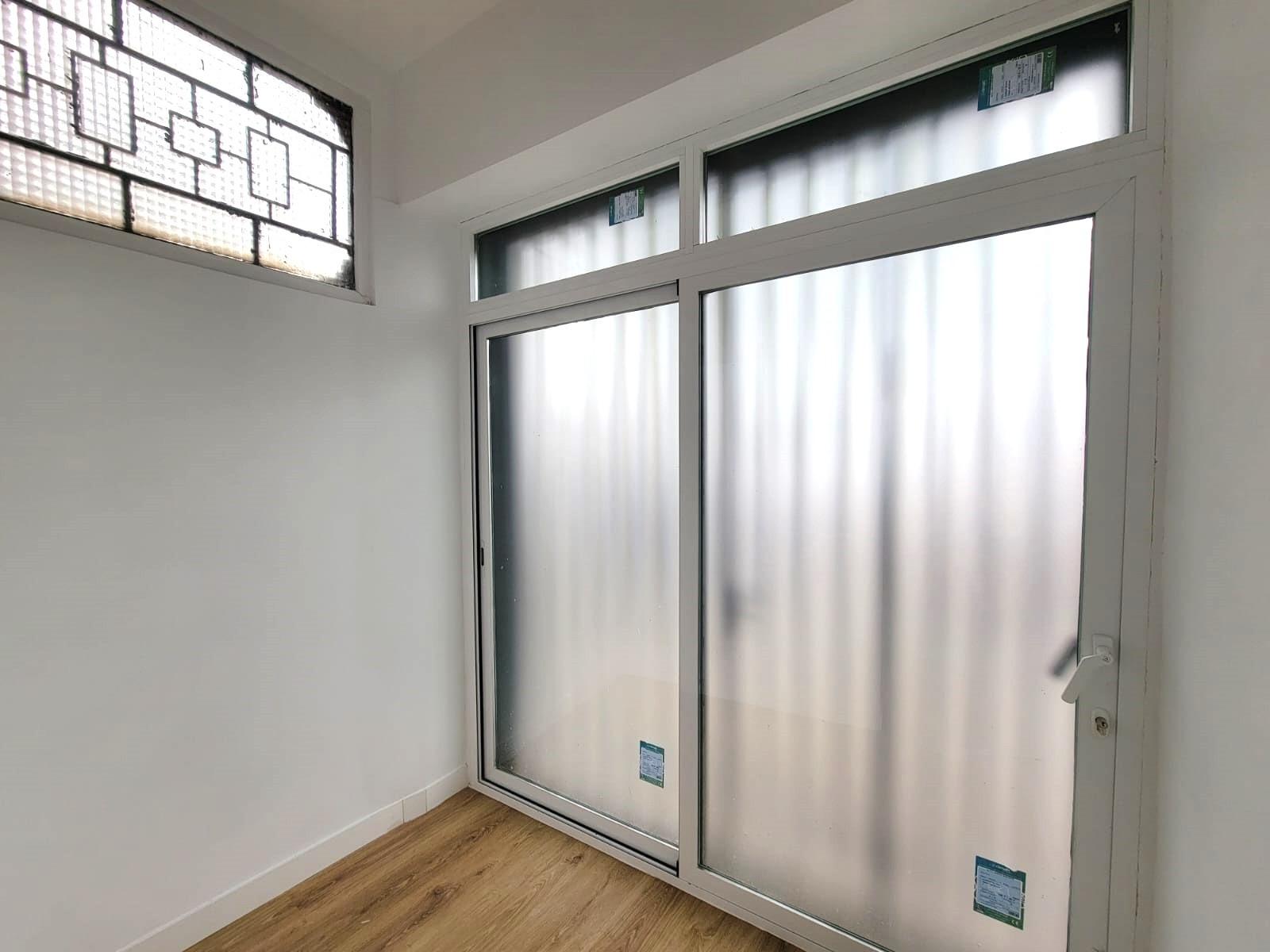 This property is divided into two spacious areas: a fully equipped open-plan kitchen connected to the living-dining room, and the rest area, which includes a large full bathroom and the master bedroom. The bedroom is divided into three sections: first, the walk-in closet, followed by the sleeping area where the bed would be, and finally a study space with direct street access through a large window.